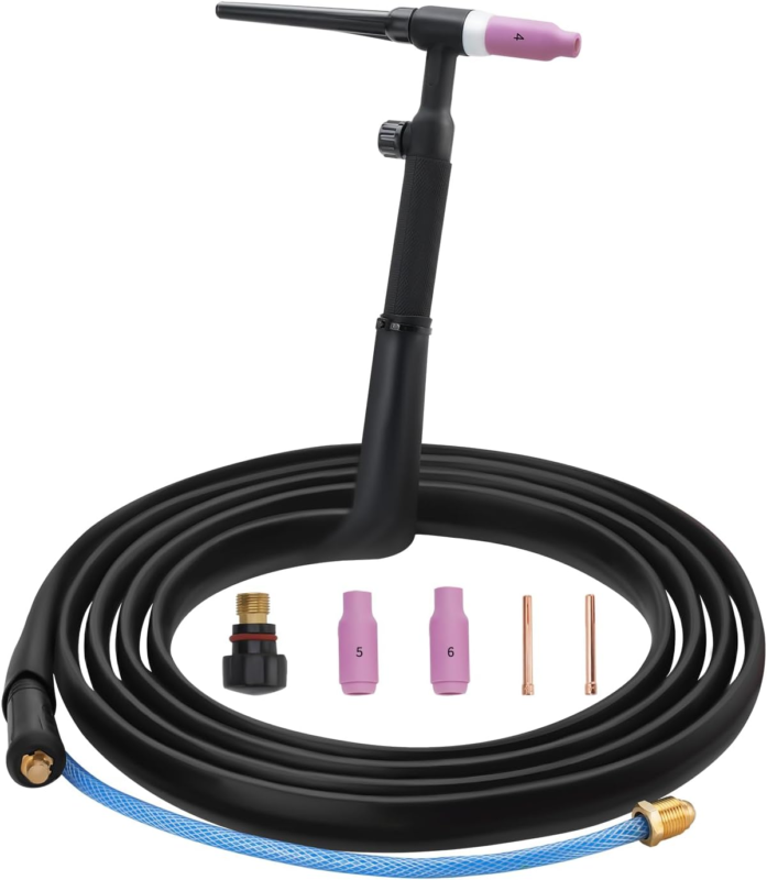 ?Tig Torch Type?150amp air-cooled WP-17V complete TIG welding torch kit,13 FT cable,35% DC 140AMP, 35% AC 125AMP,Quick Connector: 10-25mm, Electrode Size: 0.5-2.4MM