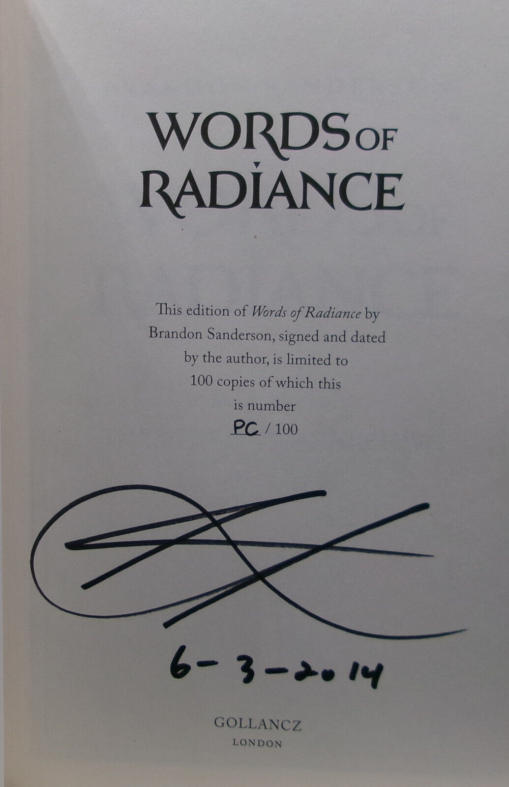 Brandon Sanderson WORDS OF RADIANCE First UK SIGNED LTD 1/100 Ed. Stormlight #2