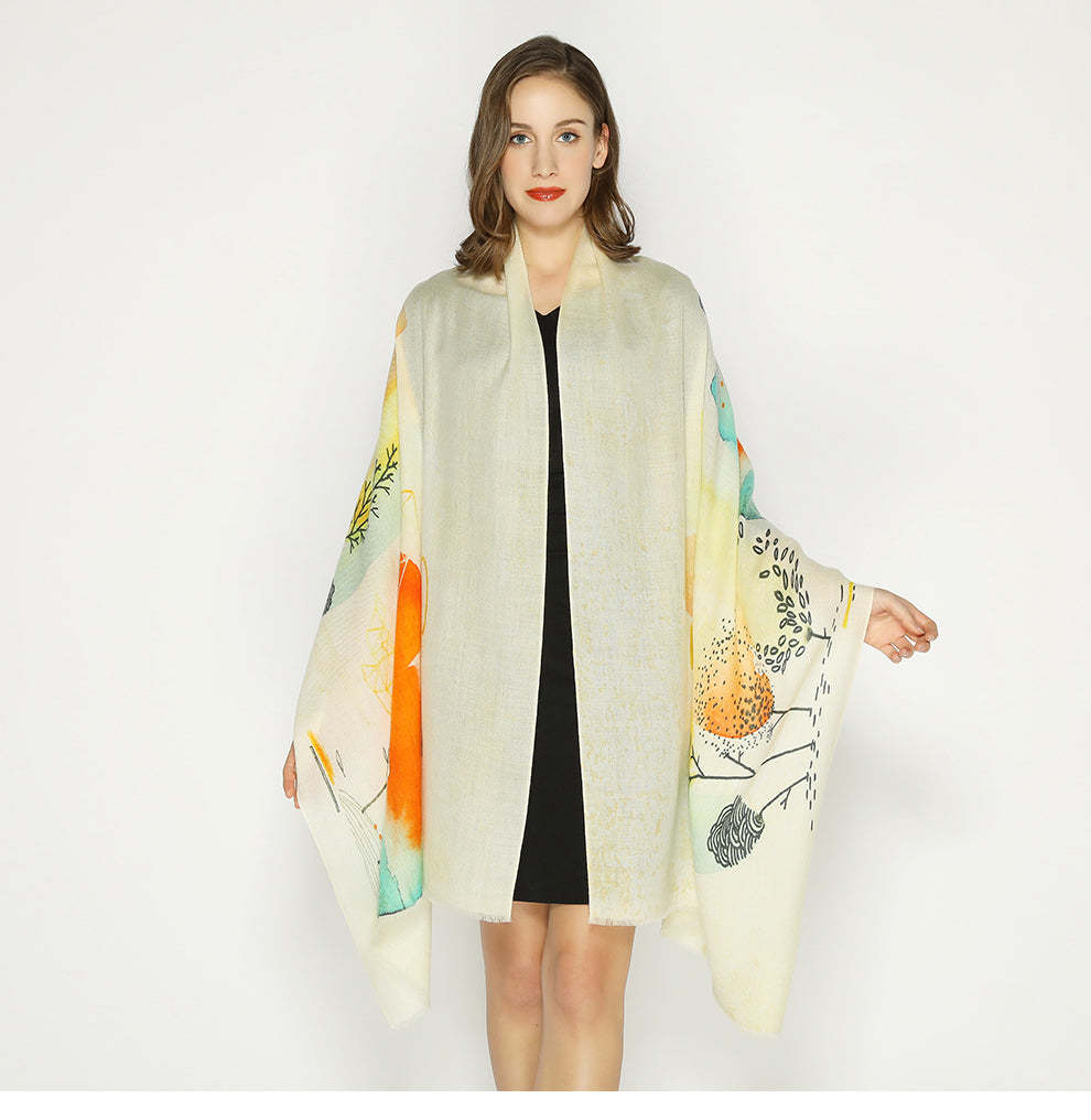Anyyou 100% Pure Merino Wool Beige Plain Tree Stylish Poncho Winter Large Scarf