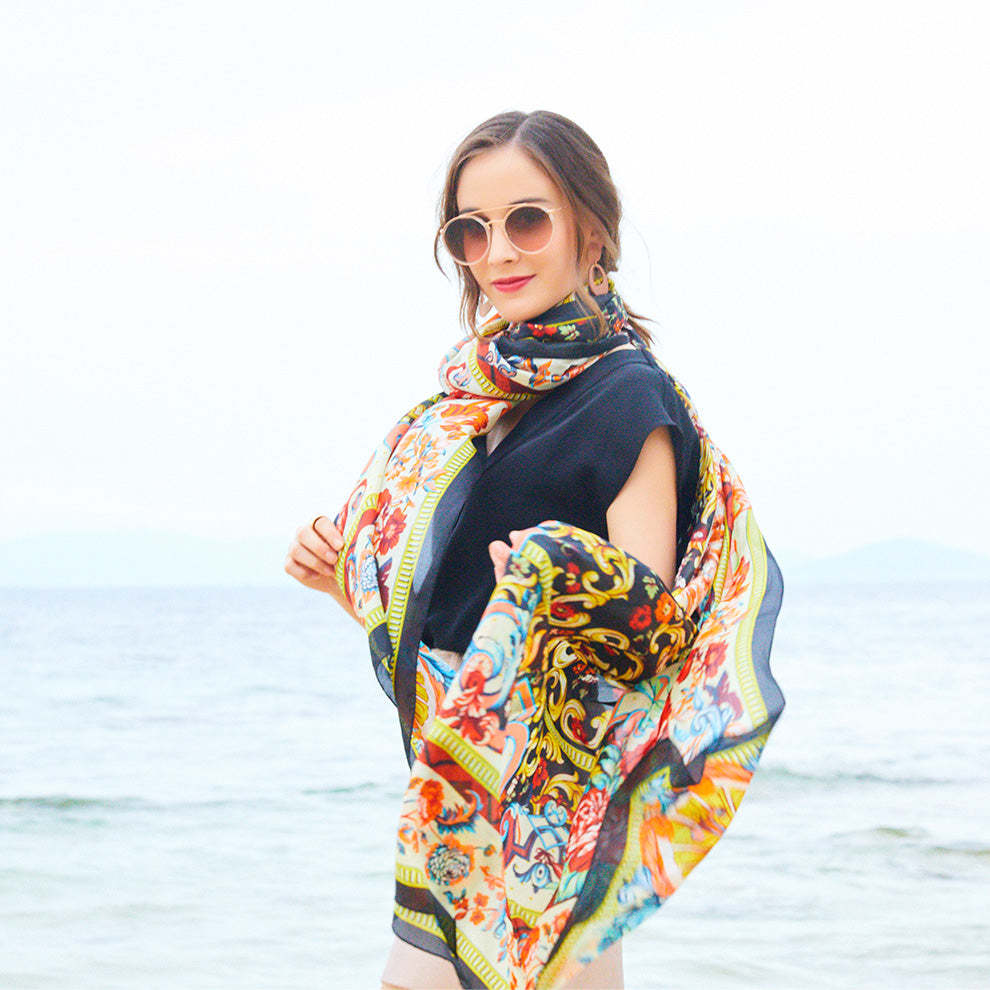 Anyyou 100% Mulberry Silk Multicolor Long Scarf Luxury Brand Women Beach Shawl W