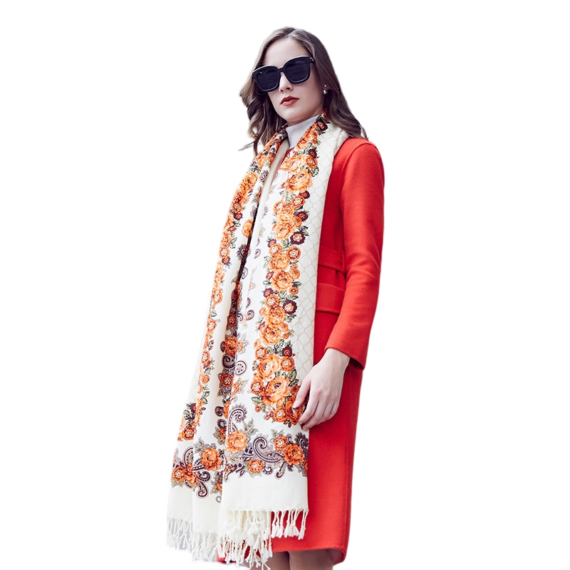 Anyyou 100% Merino Wool White-Brown Silk Satin Large Winter Scarf