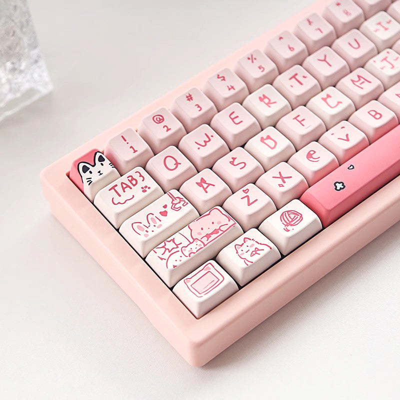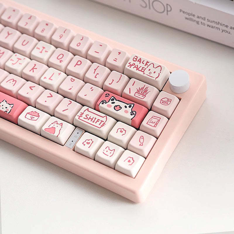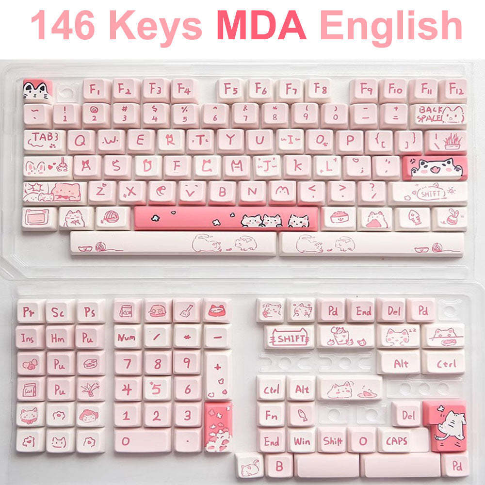 Anymob Keycap Keyboard Pink 146 Keys Cute Cat Theme Mechanical Sublimation Switc