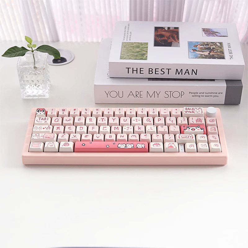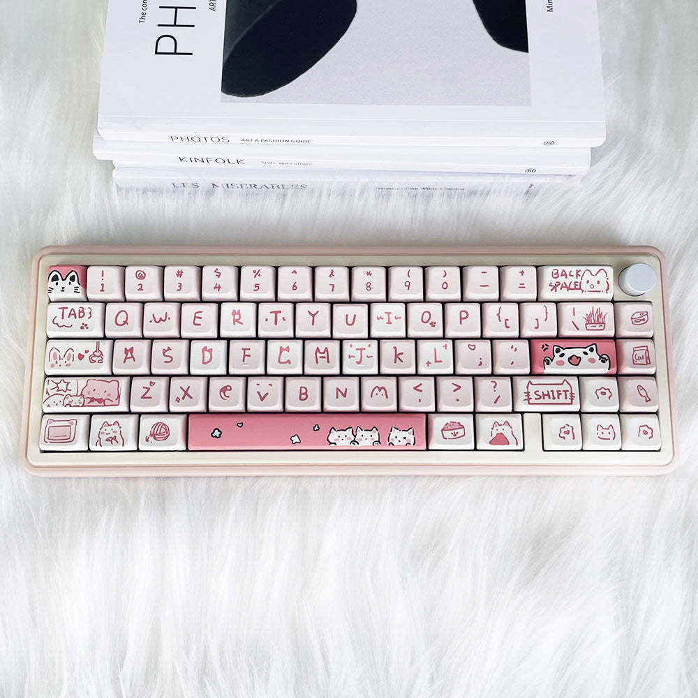 Anymob Keycap Keyboard Pink 66 Keys Cute Cat Theme Mechanical Sublimation Switch