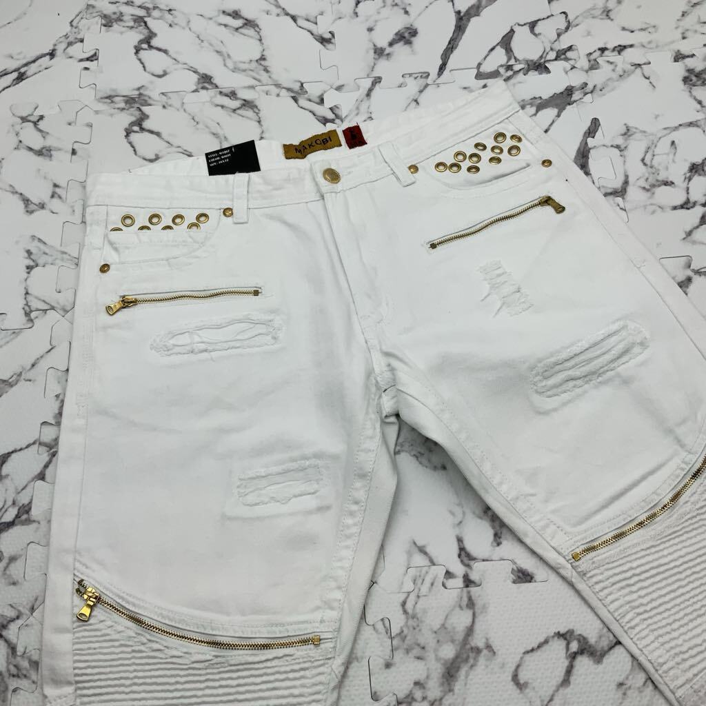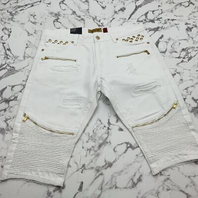 Men's Makobi White | Gold Studed Denim Shorts NWT