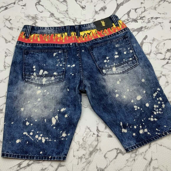 Men's Makobi Blue Splash Flame Denim Shorts NWT