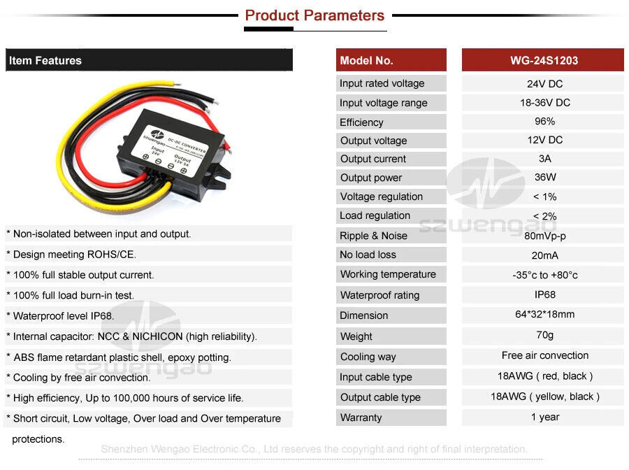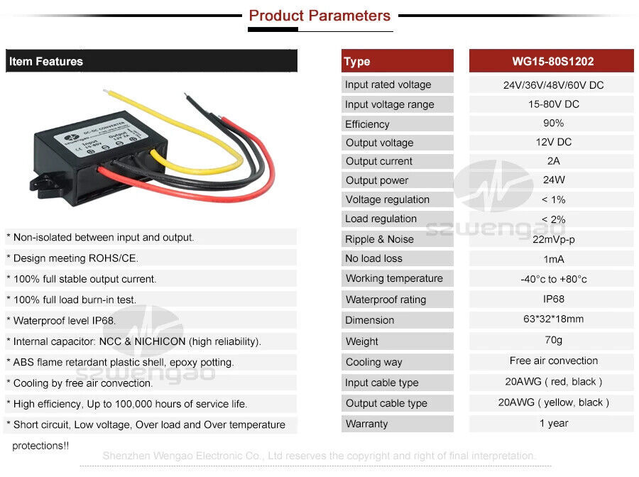 DC 24V 36V 48V 60V TO 12V 1A 2A 3A 5A Step-down Power Converter Buck Regulator