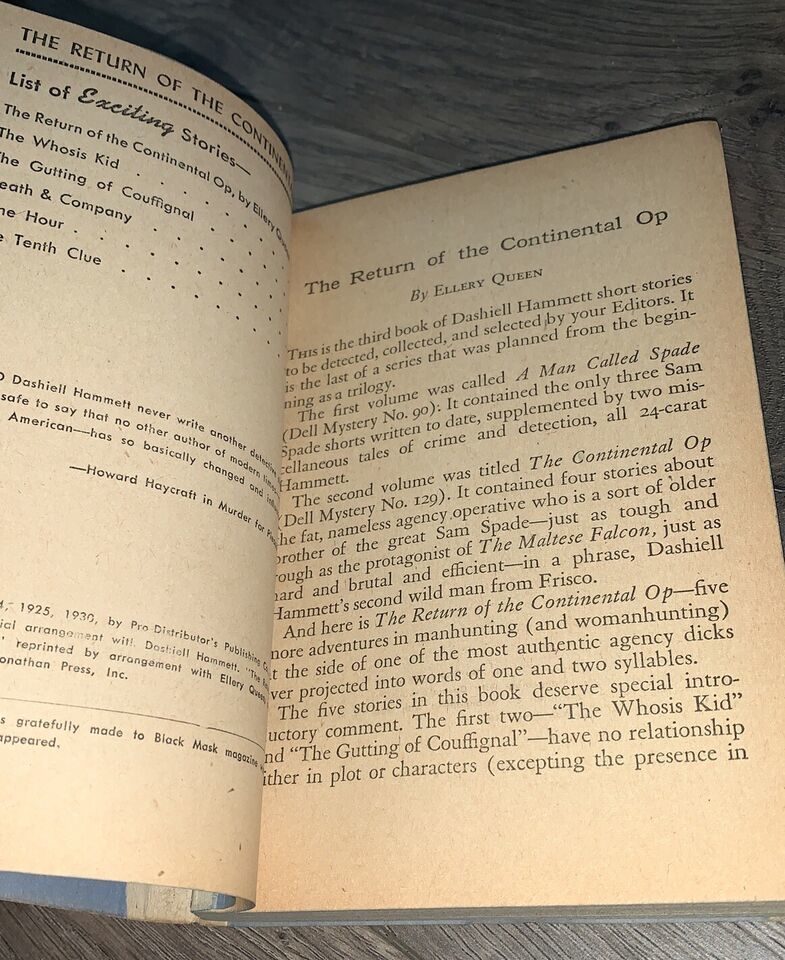 Return Of The Continental Op by Hammett, Dell 154, 1946 Vintage (Loose Cover)