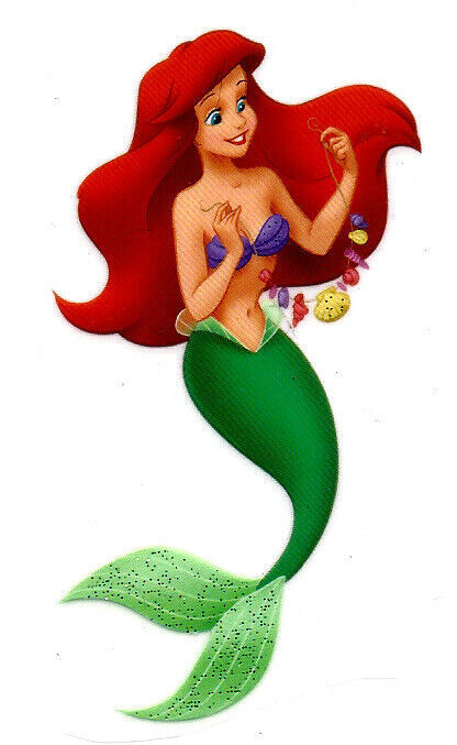 2X3" Little Mermaid glitter IRON On Heat TRANSFER Ariel under sea shell necklace