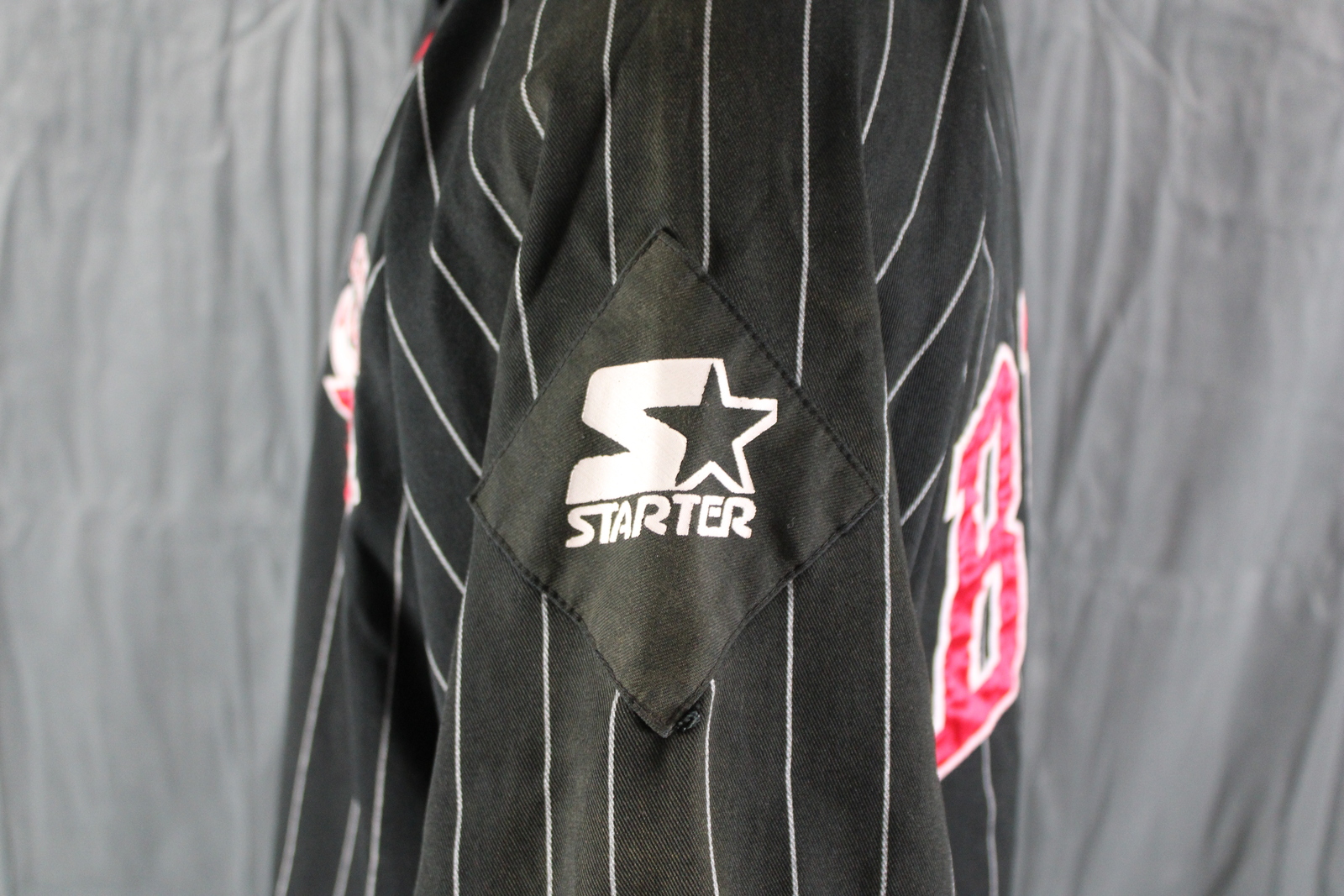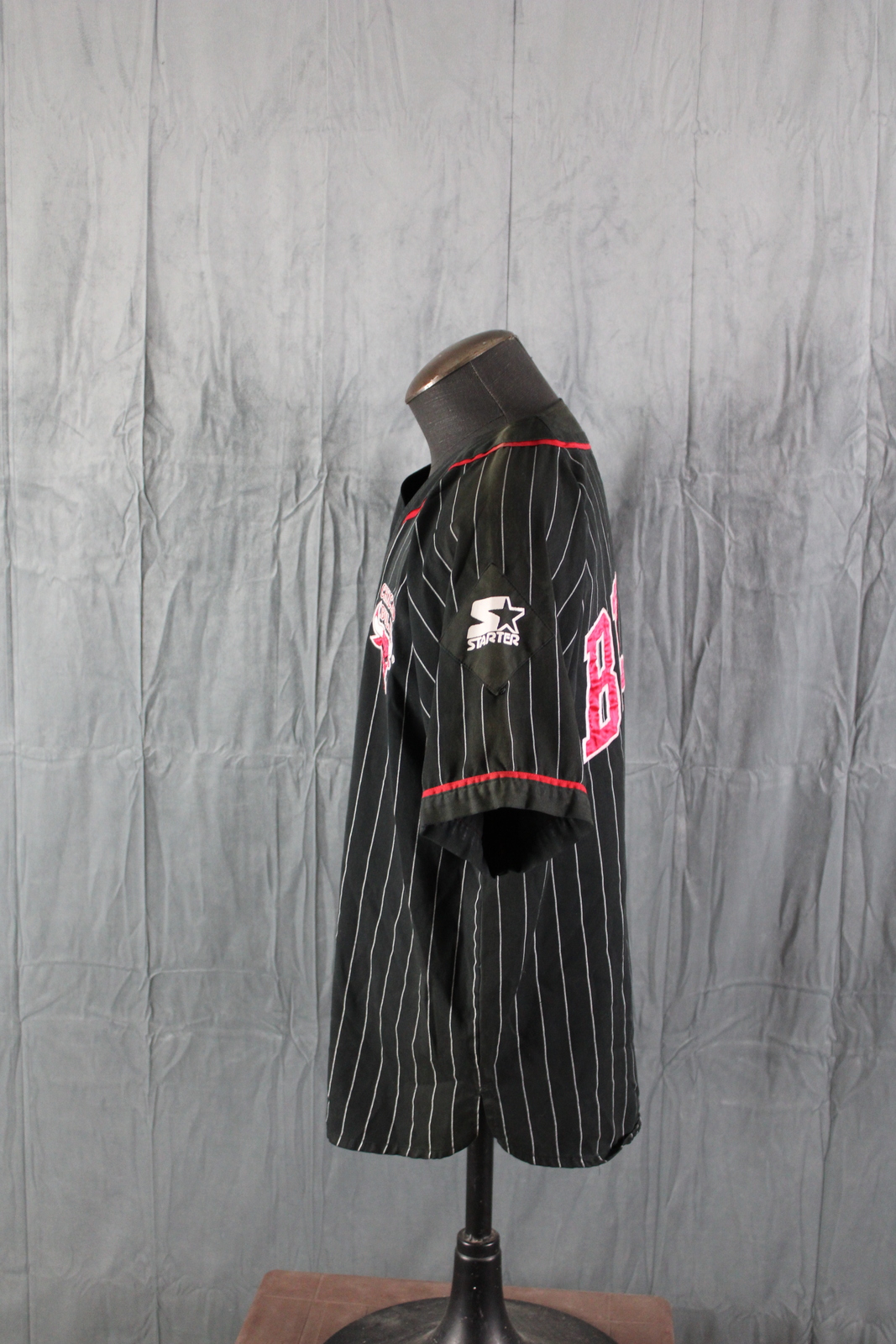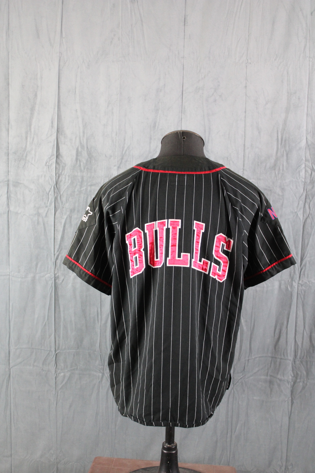 Chicago Bulls Baseball Jersey (VTG) - Black Pinstripe by Starter - Men's Large
