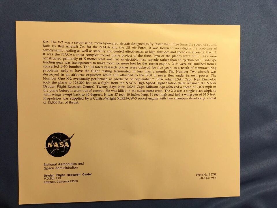 X-2 aircraft PHOTOGRAPH PRINT NASA DRYDEN FLIGHT RESEARCH CENTER. Shipped FREE with USPS First Class Package.