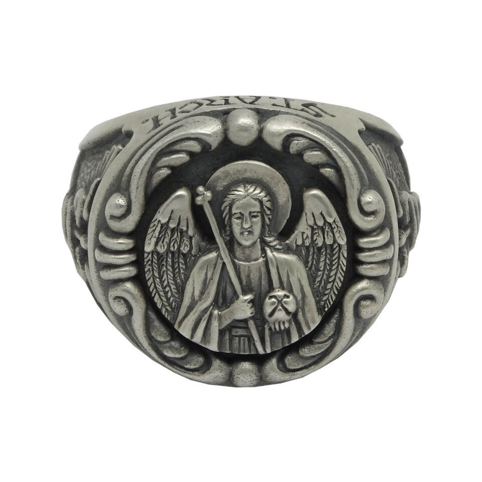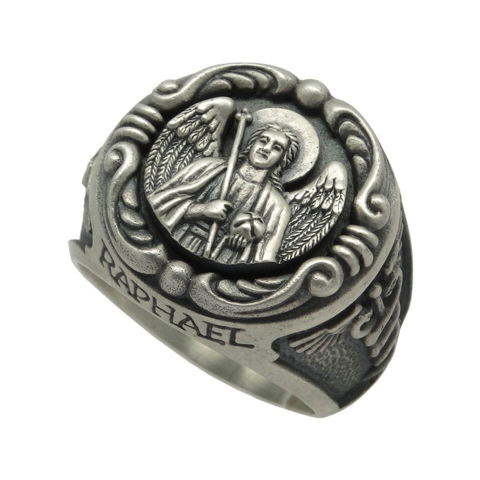 silver Handmade ?Saint Raphael the Archangel? men?s ring. An archangel of