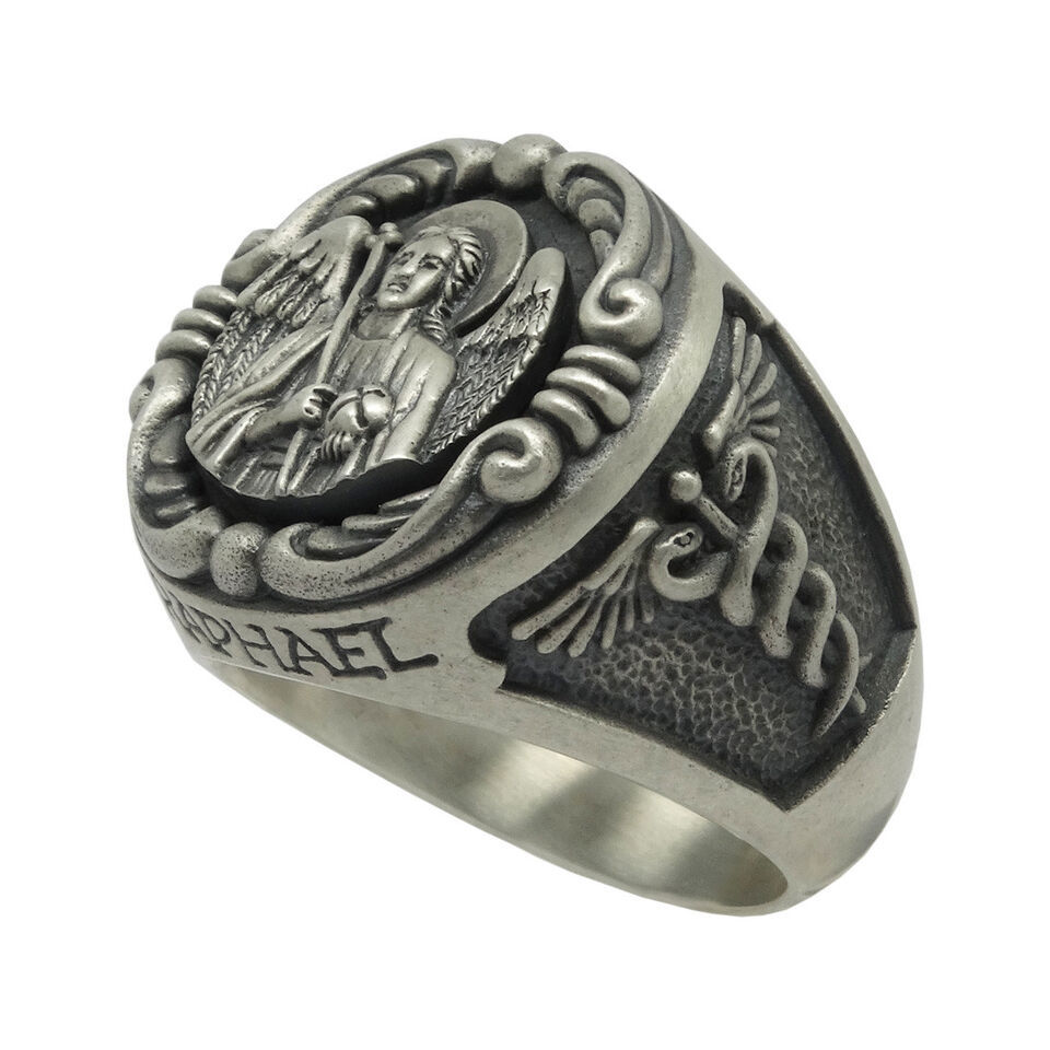 Saint Raphael Archangel Sterling Silver Men's Ring Army Medical Corps US sizes