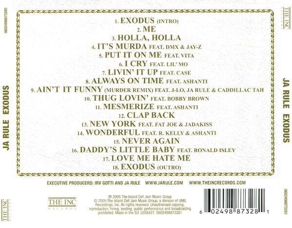 This is a brand new, factory-sealed promo copy of Ja Rule's album "Exodus" on CD. The album was released in 2005 under DEF JAM (USA) and produced by Chink Santana. The artist is known for his East Coast style and this album is a mix of East Coast Rap Hip-hop and R B Soul, with a total run time of 80 minutes. The CD is a first pressing and in perfect condition. Don't miss out on this great addition to your music collection!