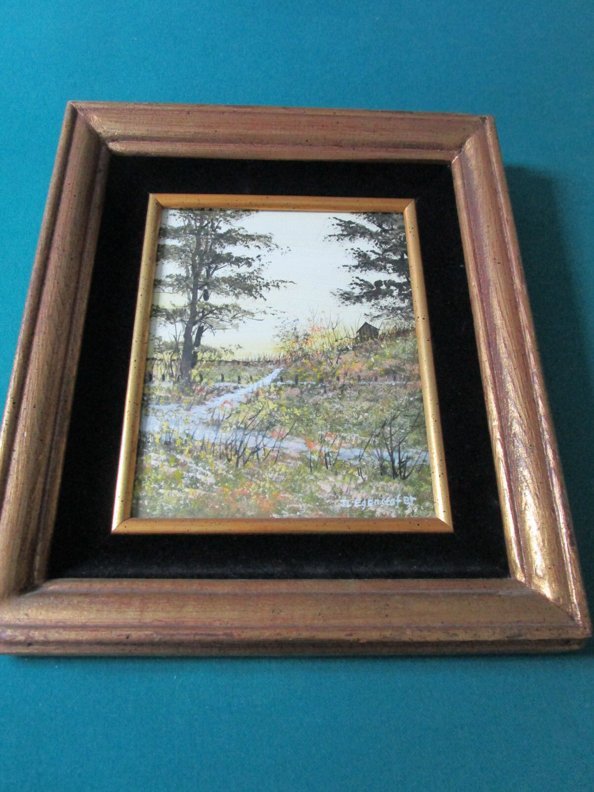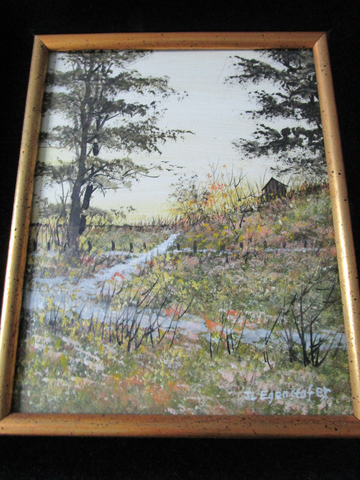 CABIN II IN THE WOODS WATERCOLOR ON BOARD PAINTING BY J.L. Egenstafer lower right SIGNATURE FRAME IS 15 X 13" PROFESSIONALLY FRAMED VELVET MATTE, ART IS 9 3/4 X 7 1/2"