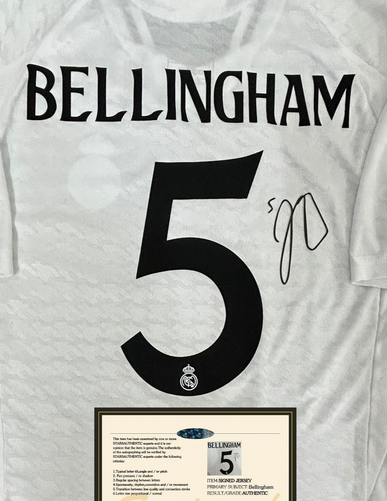 -A must for a fan or collector as this shirt represents Bellingham's NEW 24/25 season jersey for his SECOND season for Real Madrid after an amazing debut season! Some stats showing him exceeding what Ronaldo did when he was first at Madrid!