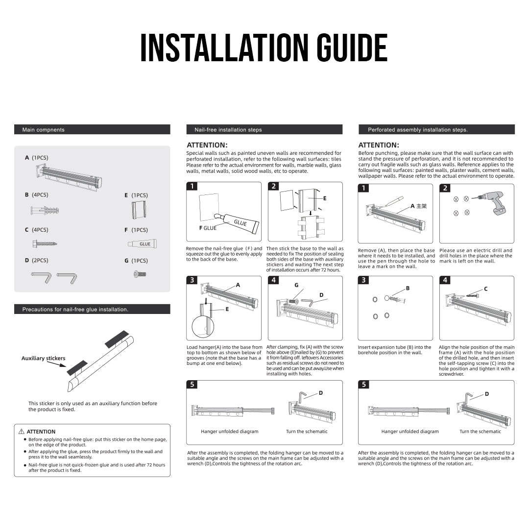 Note: The walls must consist of sturdy, smooth materials like tiles, glass, or wood. Do not use weaker wall types like whitewashed walls, painted walls, or wallpaper, unless we install them by punching holes.