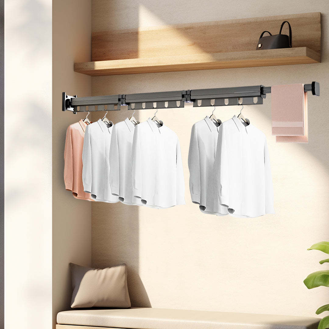 RETRACTABLE DESIGN: This clothing rack allows you to extend and retract as needed. It ensures a smooth and effortless retraction mechanism that doesn't require excessive force.