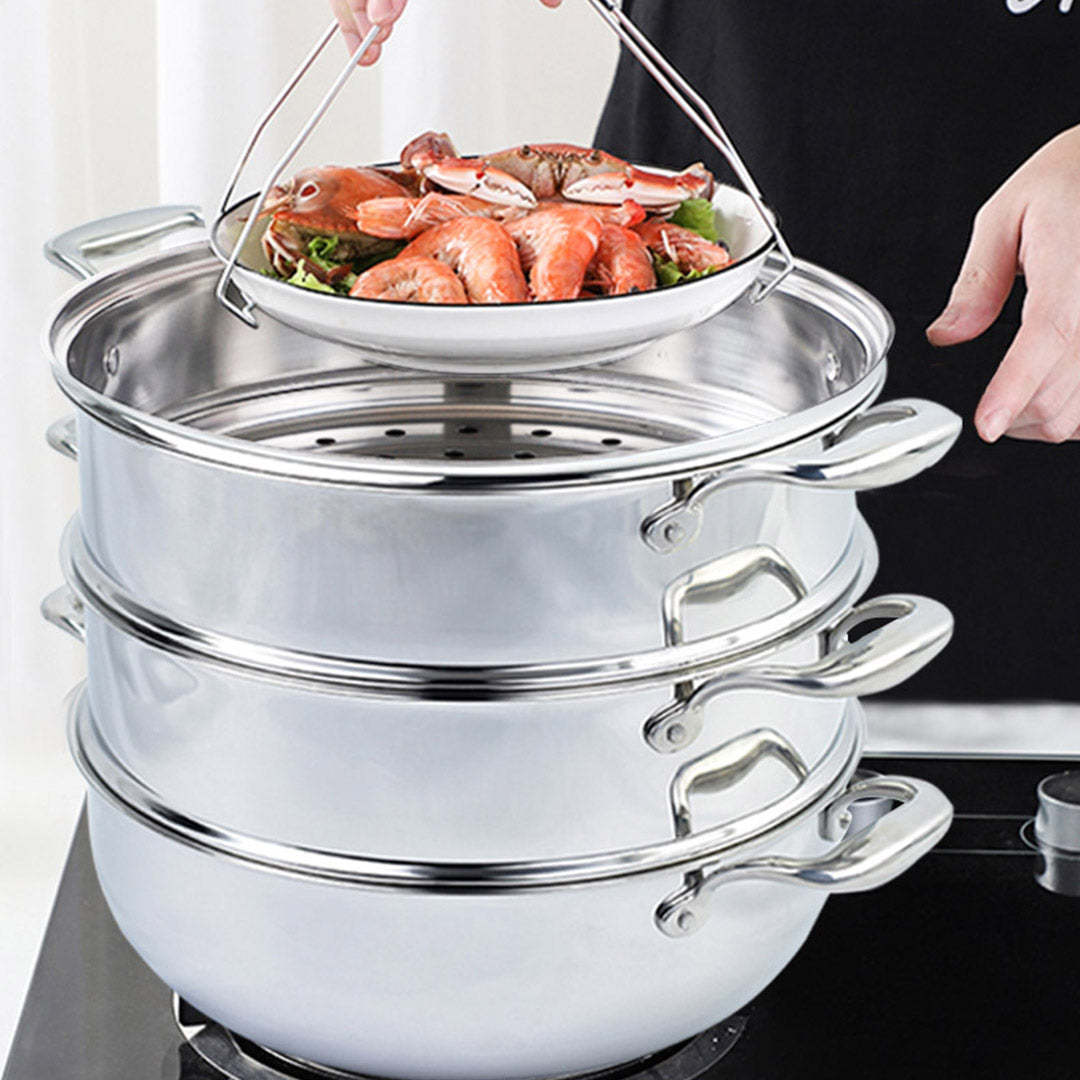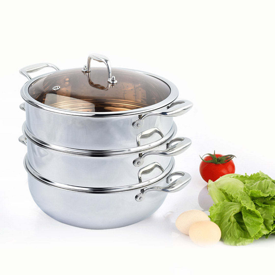 SOGA 3 Tier 30cm Heavy Duty Stainless Steel Food Steamer Vegetable Pot Stackable