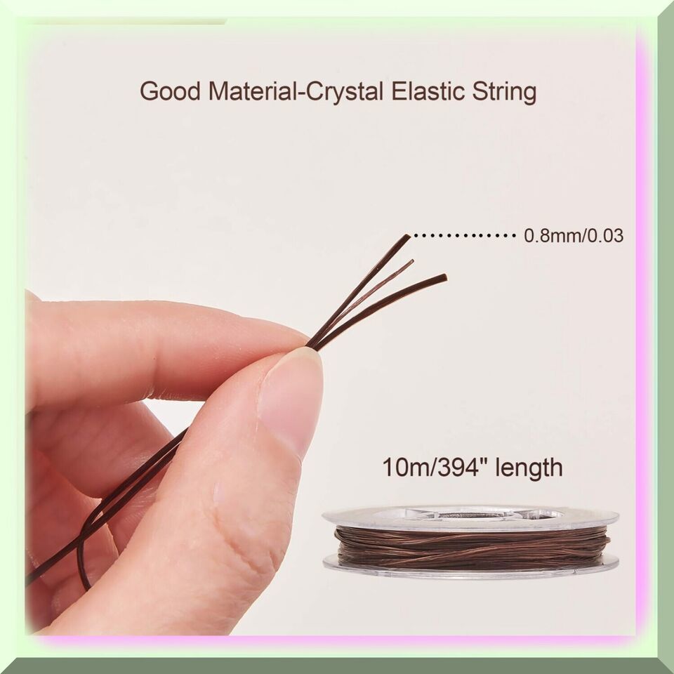 10m Coconut Brown Elastic Beading Thread Cord - 0.8mm Strong Stretchy Flat Cryst