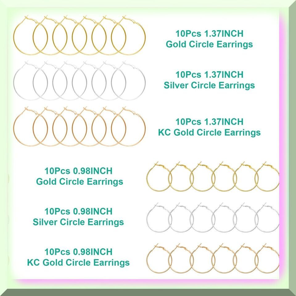 Whether you prefer to wear them as they are or get creative and DIY them, these hoops are sure to add a touch of elegance to any outfit. Each package includes 12 pieces of 1.18 inch gold, silver, and KC gold beading earring hoops, as well as 12 pieces of 1.57 inch gold, silver, and KC gold beading earring hoops, making a total of 72 pieces.