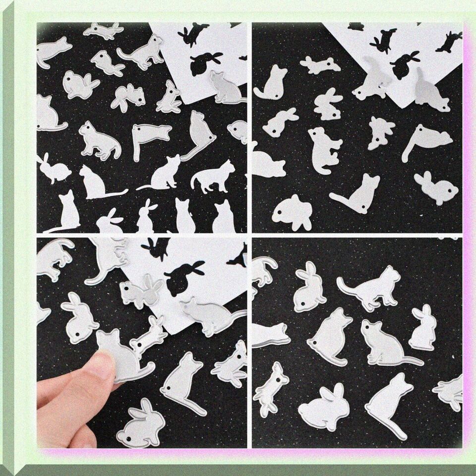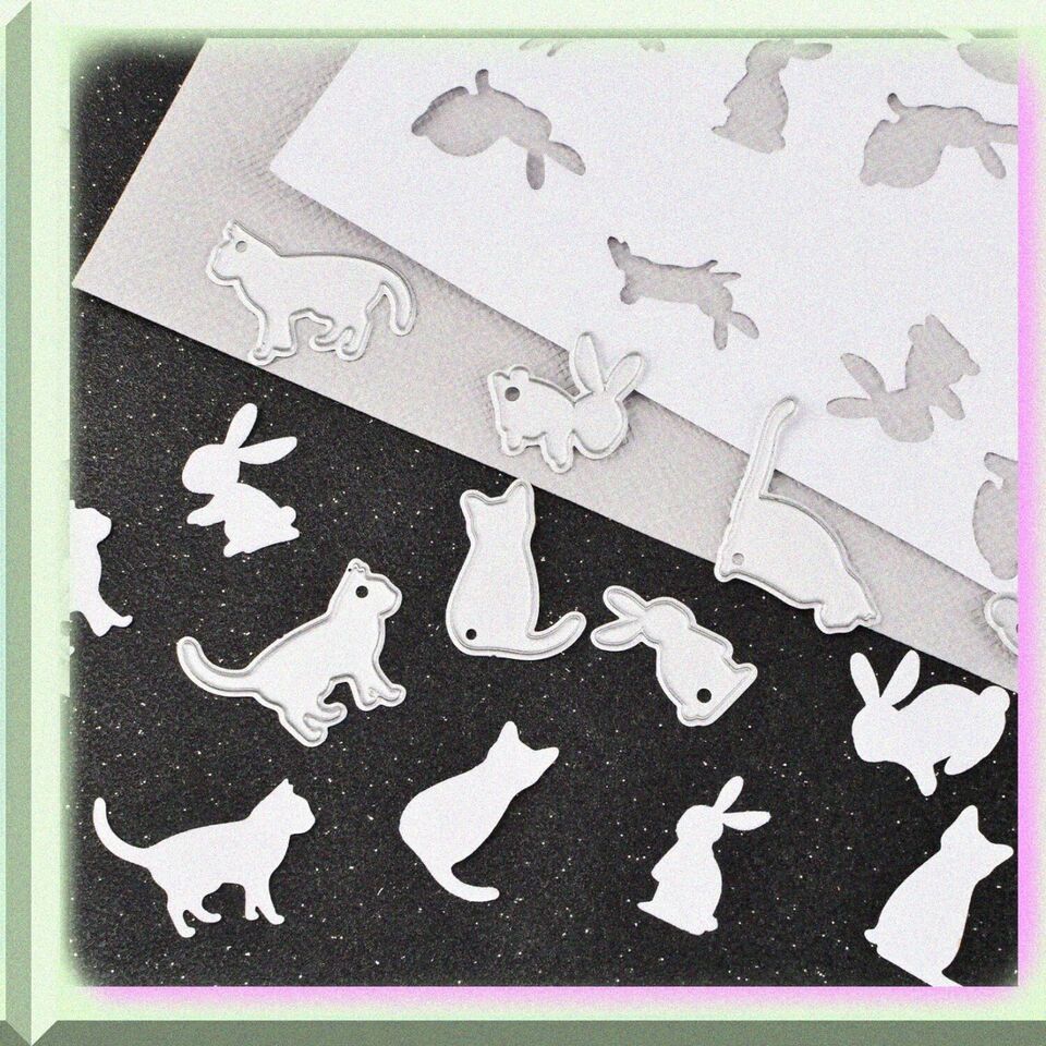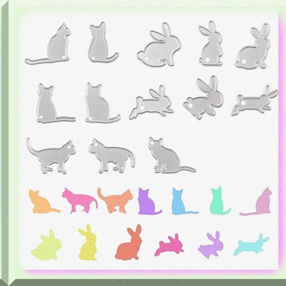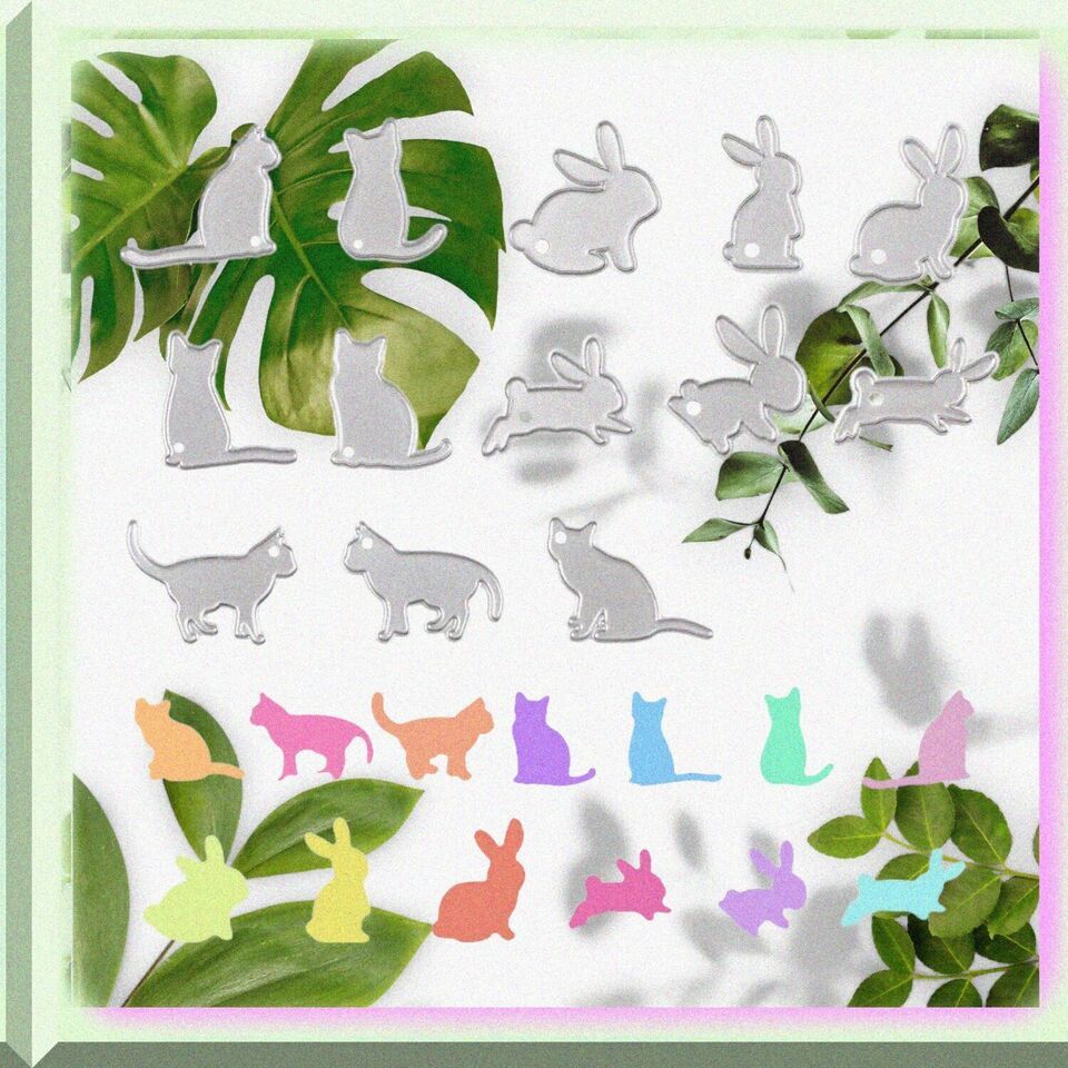 13 PCS Rabbit & Cat Metal Cutting Dies Set, Pet-Themed Die Cuts for DIY Scrapboo