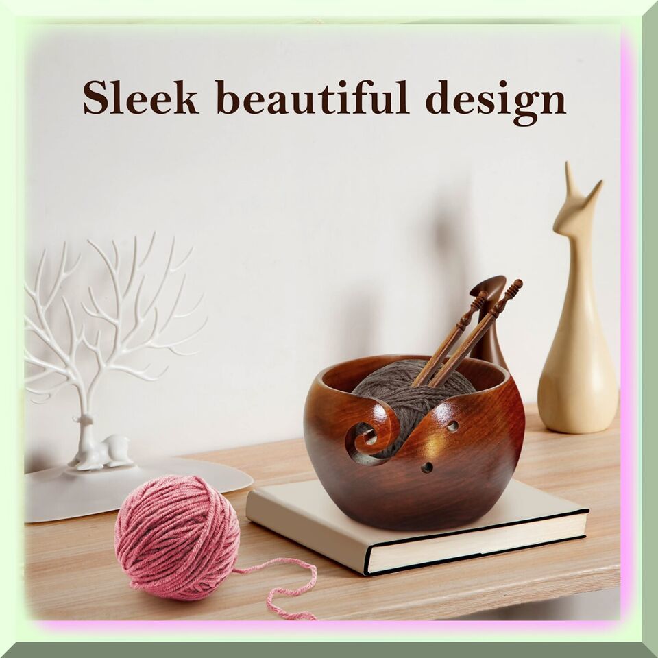 BEST QUALITY: Immerse yourself in the epitome of craftsmanship with our wooden yarn bowl. Every inch of its surface is meticulously smoothened, ensuring a flawless finish. A high gloss coating is applied to the entire surface, including the mesmerizing swirls and intricate holes. This prevents your yarn from catching, allowing for a seamless knitting experience. The bowl features a delicately curled slot that effortlessly captures the yarn as you knit, ensuring a steady flow through the swirl while preventing any pesky tangles. Additionally, two holes are thoughtfully incorporated into the design, providing a perfect storage solution for your knitting needles.