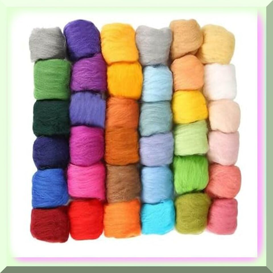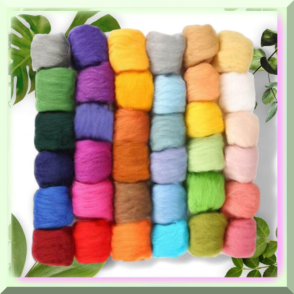 Vibrant Fiber Palette: 36 Shades of Wool Roving for Needle Felting, Spinning, an