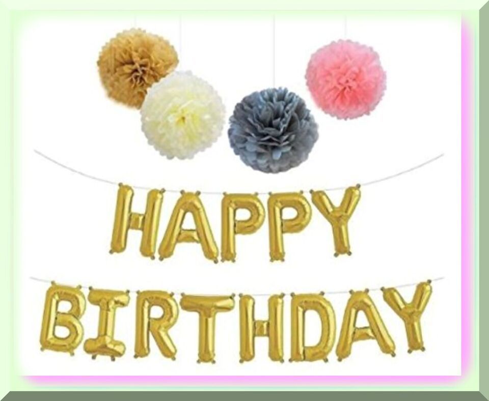 Golden Celebration Party Kit: Happy Birthday Balloon Letters, Banner, Tissue Pap