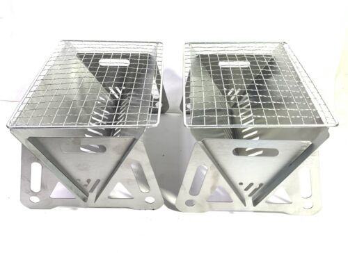 QTY-2! Stainless Steel Portable Notebook Charcoal BBQ Grill Instant Collapsible