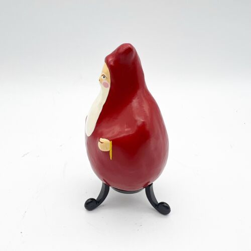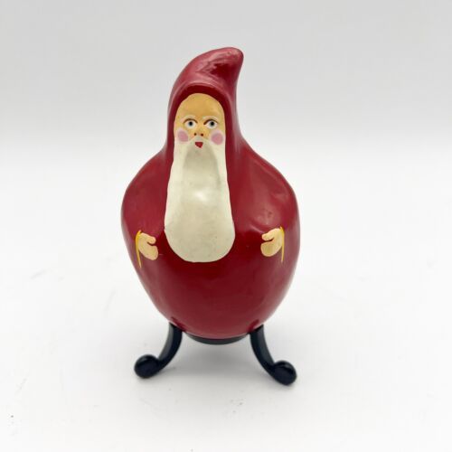 Vintage Antique Paper Mache Roly Poly Santa Hand Painted W Stand