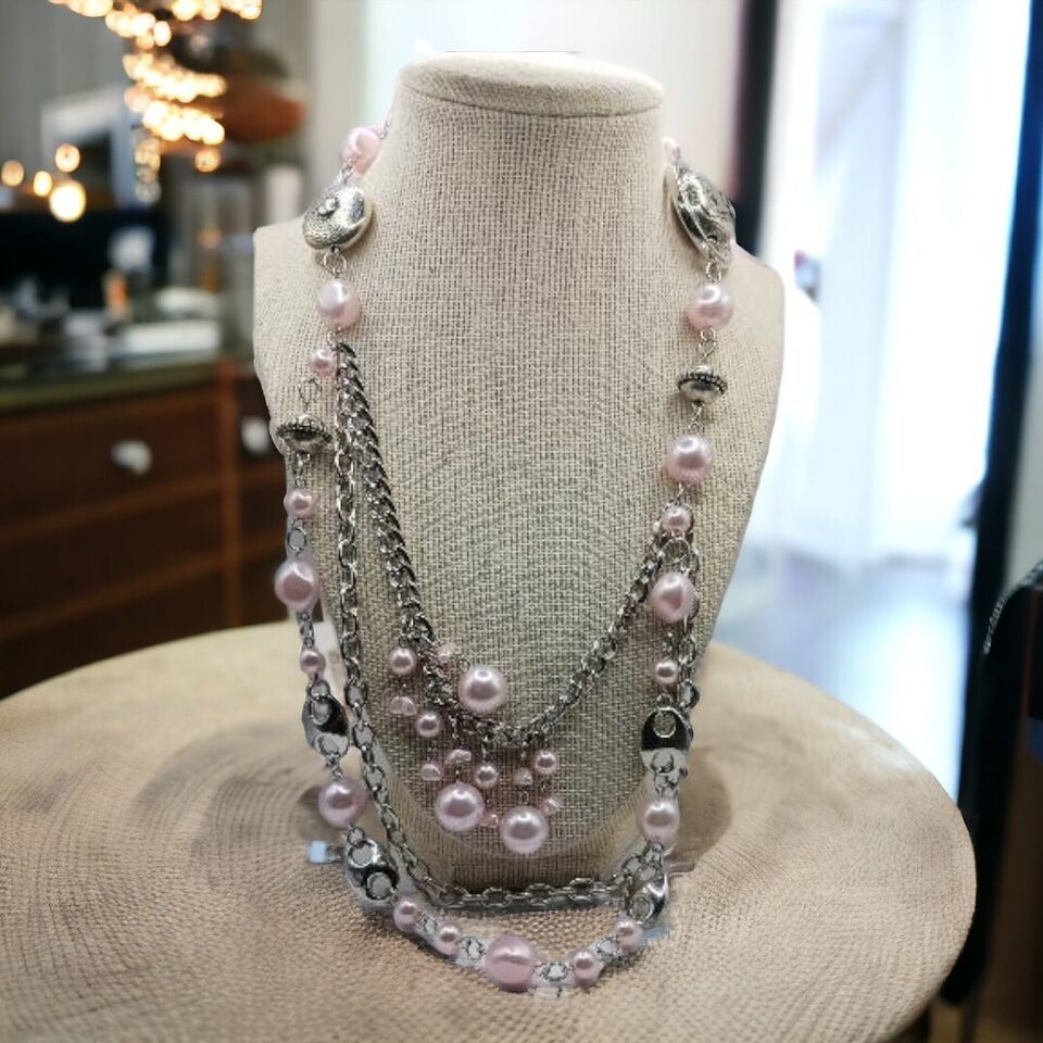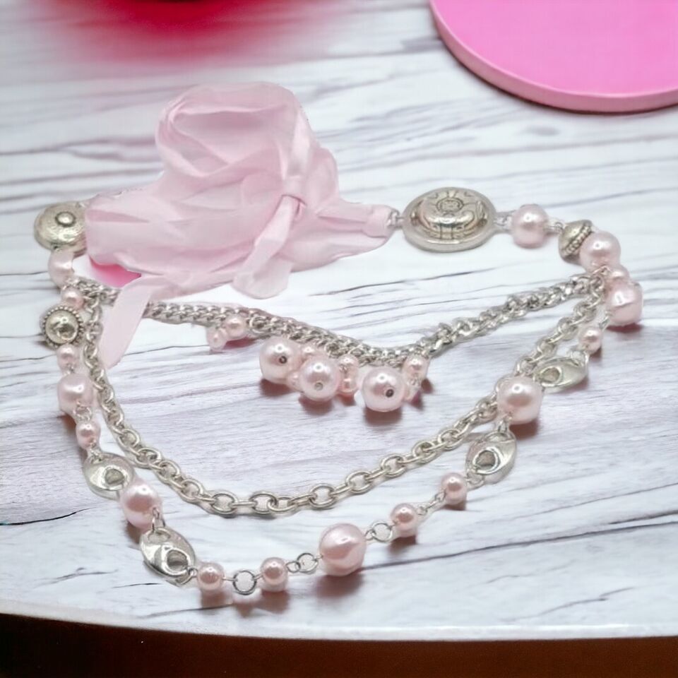 3 strand necklace with ribbon tie. Condition is Pre-owned. Shipped with USPS Ground Advantage.