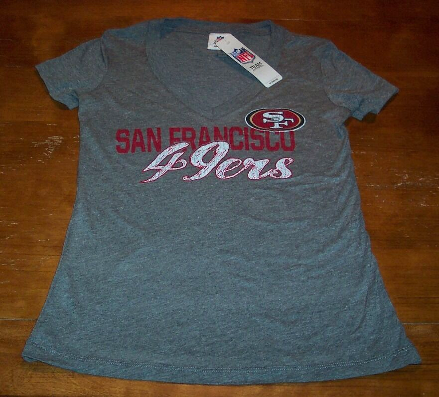 This is a VINTAGE STYLE WOMEN'S TEEN SAN FRANCISCO 49ERS NFL Football T-shirt. It is a size SMALL, and it is NEW with the tag. It is 17 inches from armpit to armpit and 25 inches in length. It is an official NFL TEAM APPAREL WOMEN'S Shirt. The print is made to look vintage. Combine auctions to save on shipping. D7AF