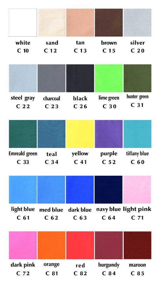 We have a picture of all available colors in cotton and camouflage designs.