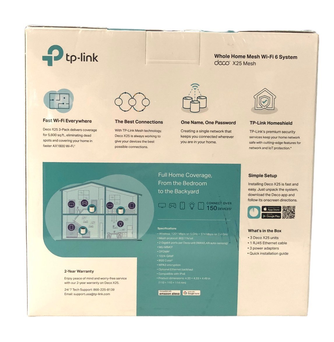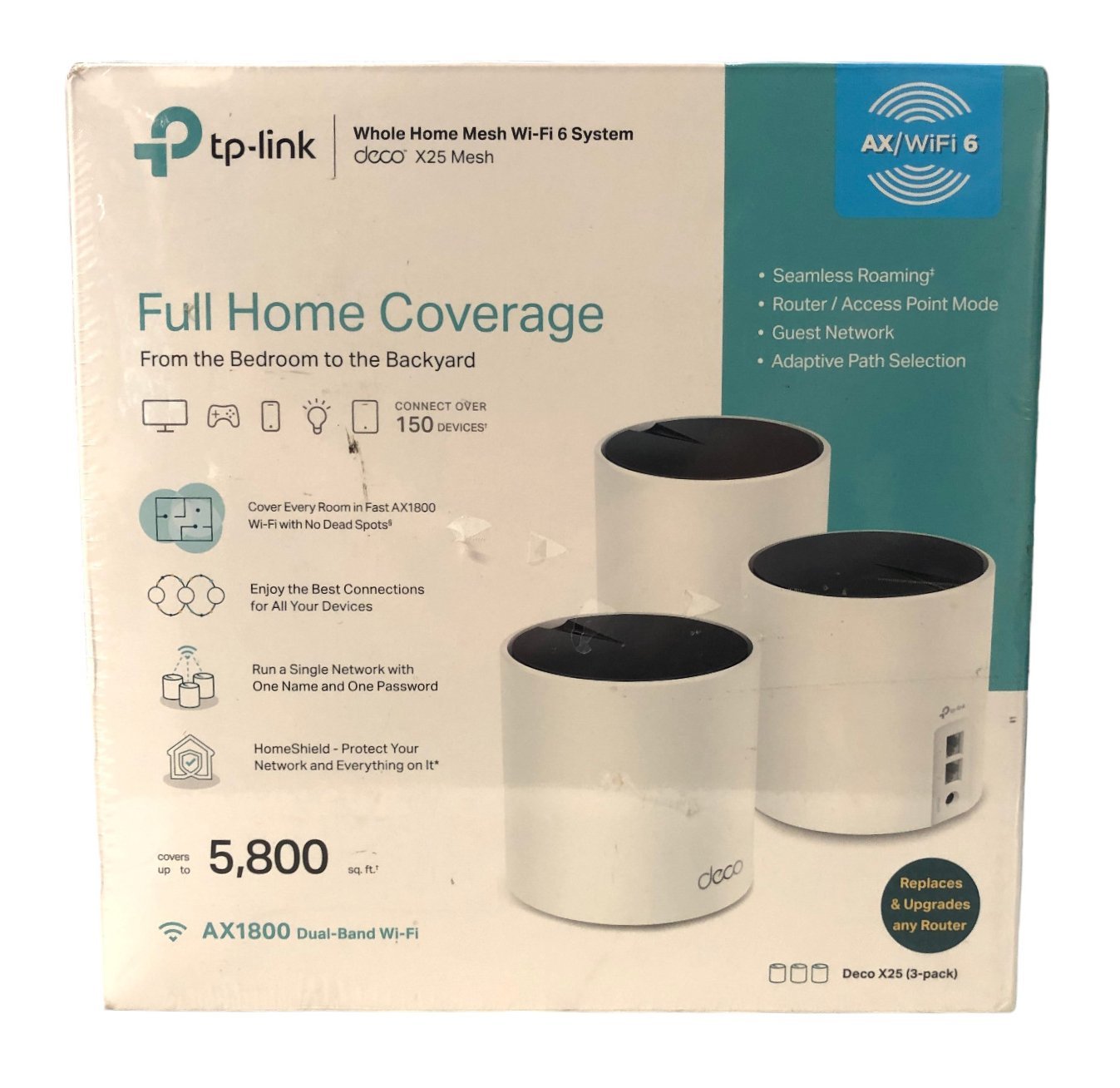 Type: Range ExtenderBrand: TP-LinkModel number: AX1800Model name: DUAL X25Size: 3 PACKColor: WhiteCondition:New (Sealed)