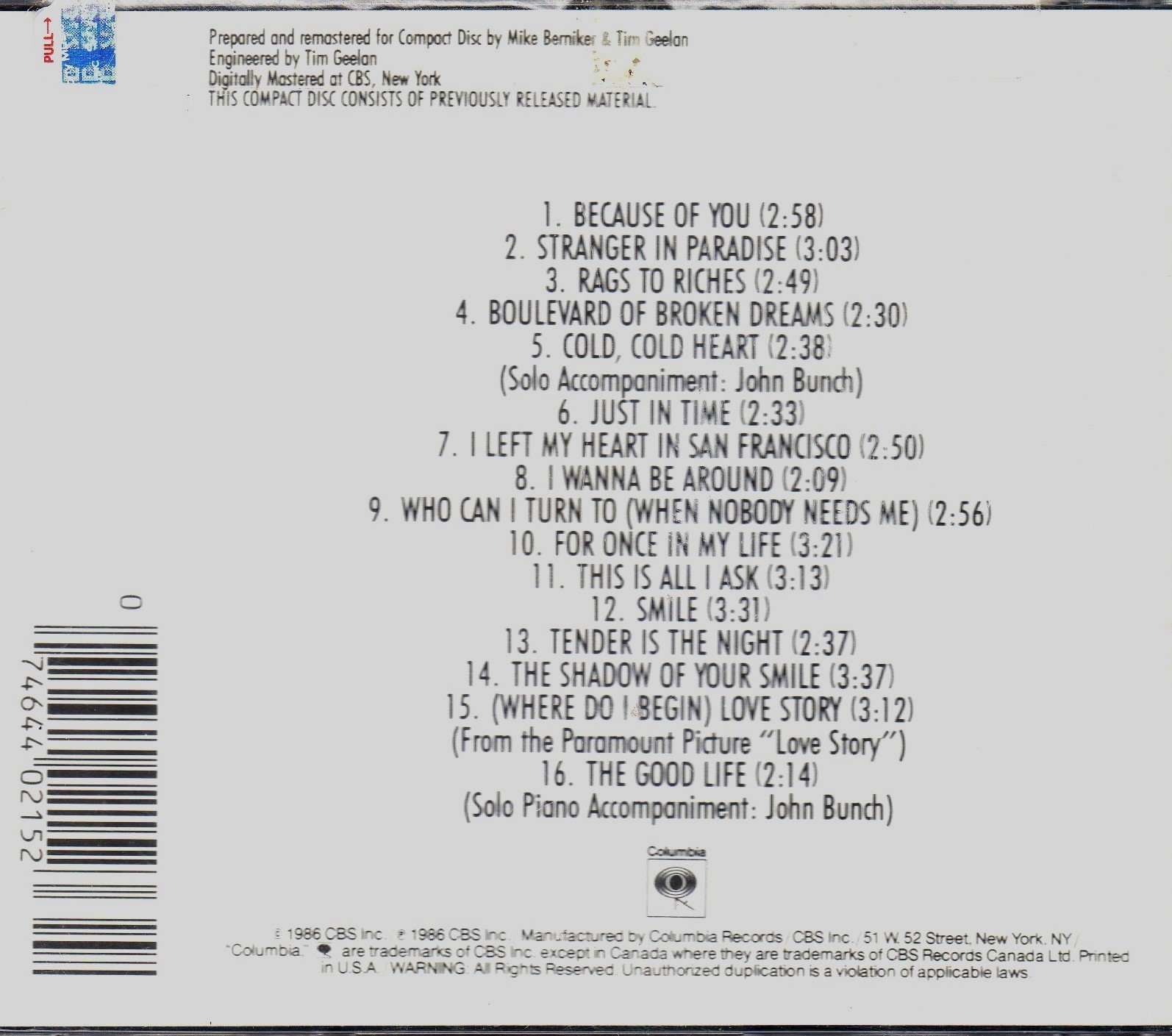 Tony Bennett 16 Most Requested Songs Cd and 50 similar items