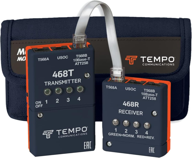 Cable Tester Check Wiring Integrity of LAN, Telephone Patch Cords, Structured Cabling Tempo Communications 468 Wiremap Tester LAN Network