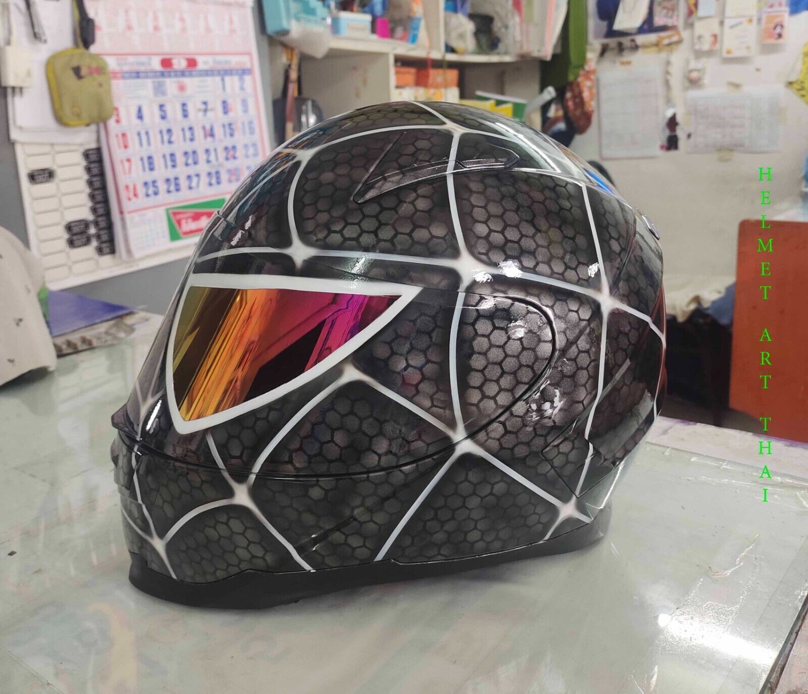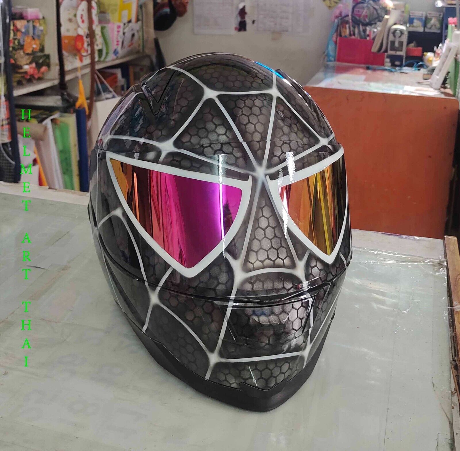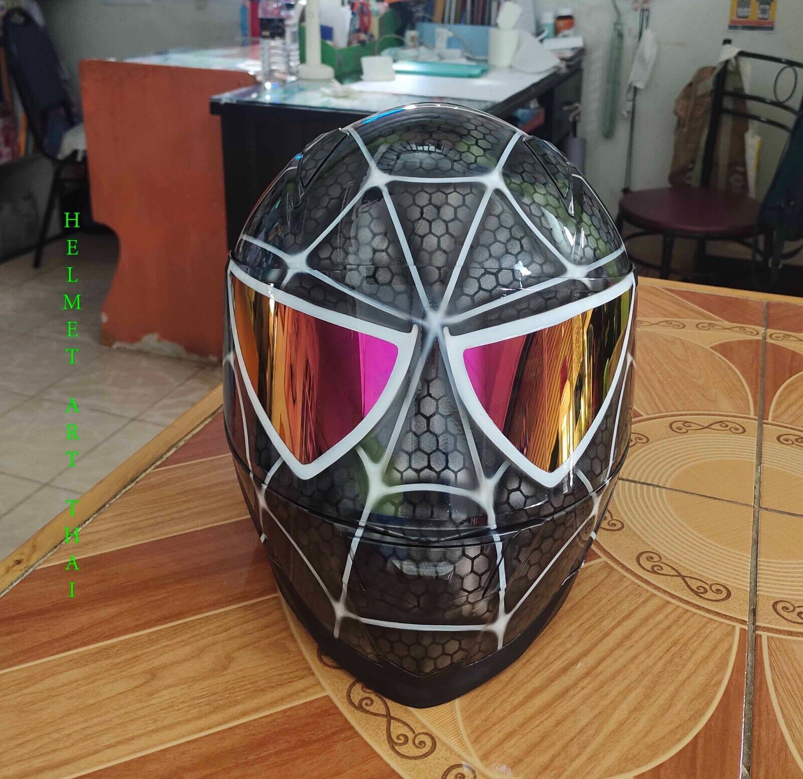 CASQUE MOTO SPIDER MAN CUSTOM AIRBRUSHED