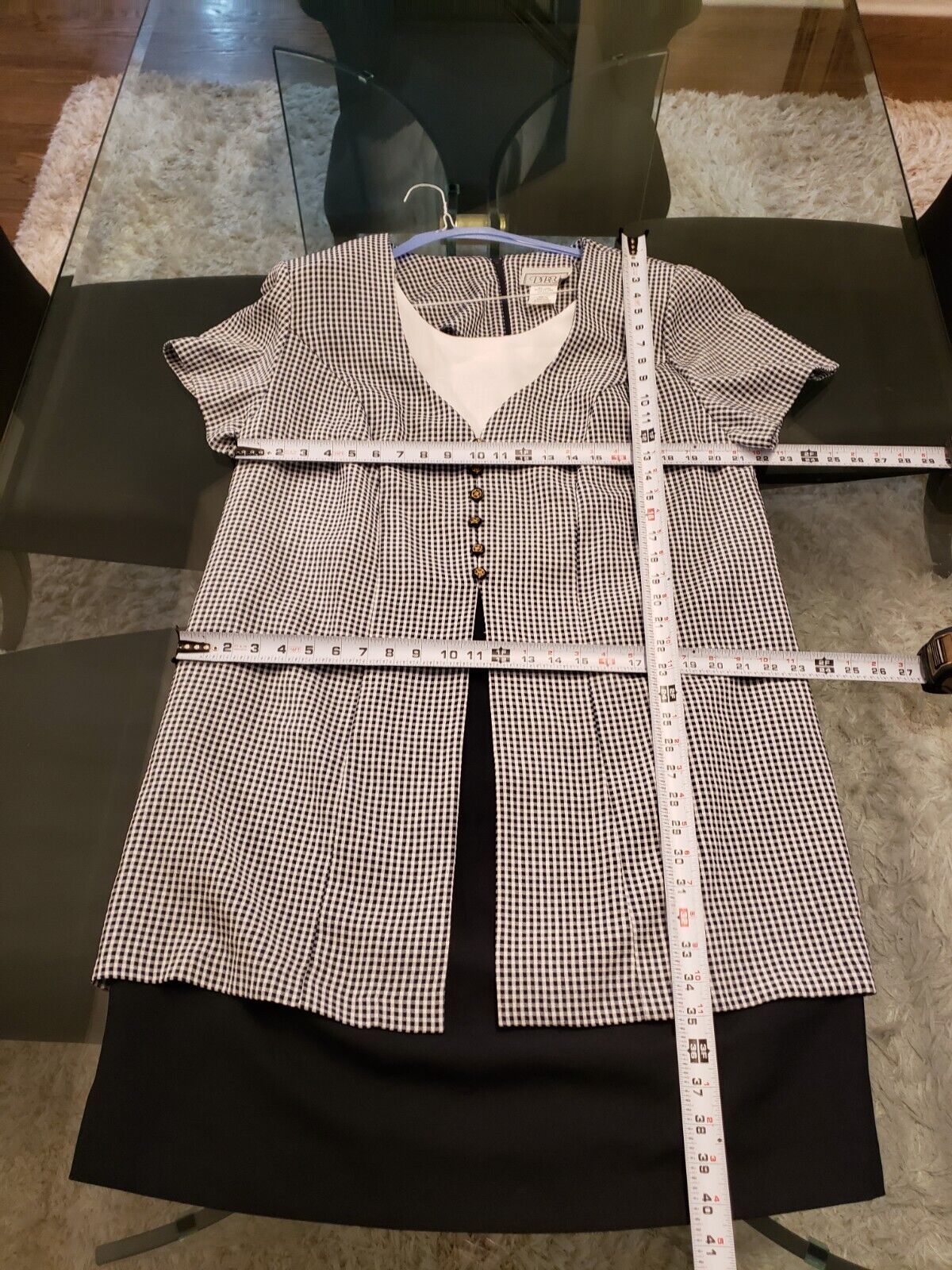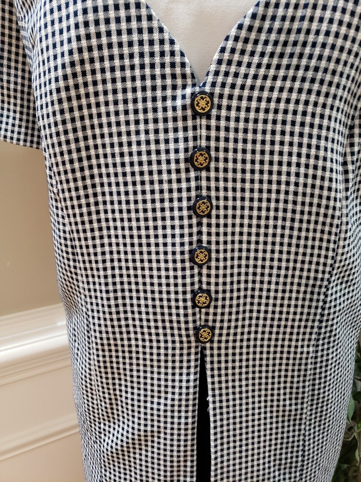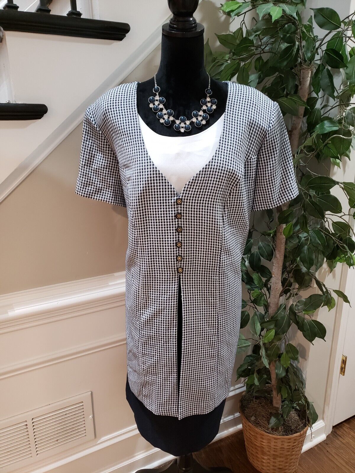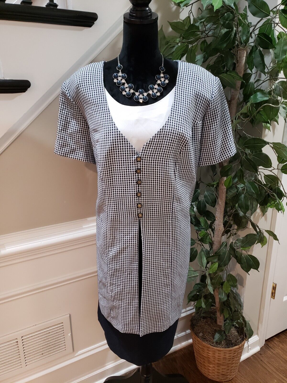 Vintage DBY Ltd. Womens White Black Gingham Deep V Neck Jacket Dress Size 16.