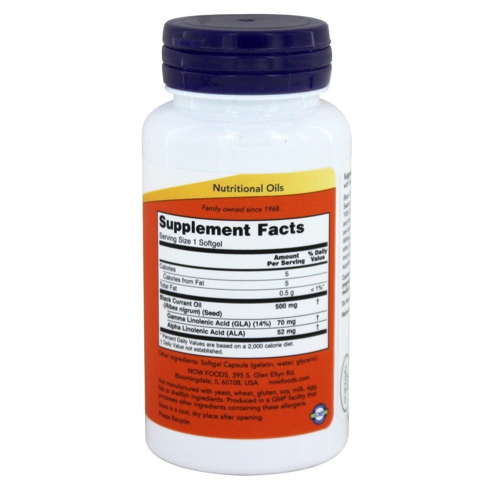 Now Foods Black Currant Oil is extracted from black currant seeds that produce a valuable nutritional oil containing 14% GLA. Each Now Foods Black Currant Oil softgel contains almost double the GLA content of Evening Primrose Oil. This means thatthree Now Foods Black Currant Oil softgels a day provides the GLA equivalent of 6 regular Evening Primrose Oil at a more economical price. Now Foods Black Currant Oil is extracted from black currant seeds that produce a valuable nutritional oil containing 14% GLA. Each Now Foods Black Currant Oil softgel contains almost double the GLA content of Evening Primrose Oil. This means thatthree Now Foods Black Currant Oil softgels a day provides the GLA equivalent of 6 regular Evening Primrose Oil at a more economical price.