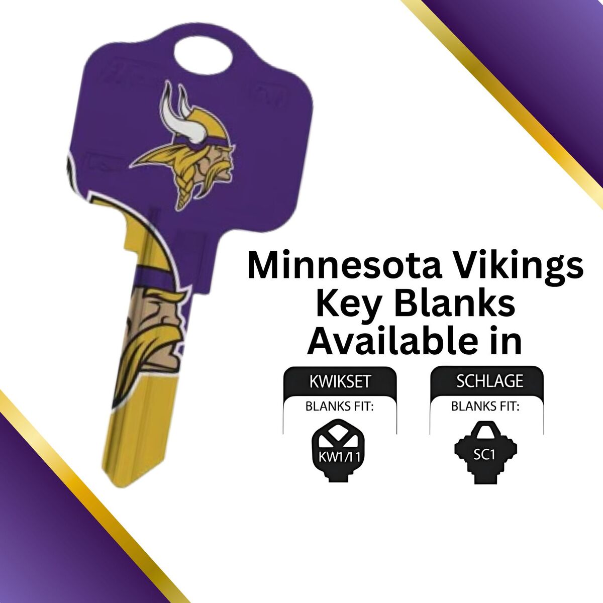 Minnesota Vikings NFL Team Keys Available for Kwikset or Schlage Locks