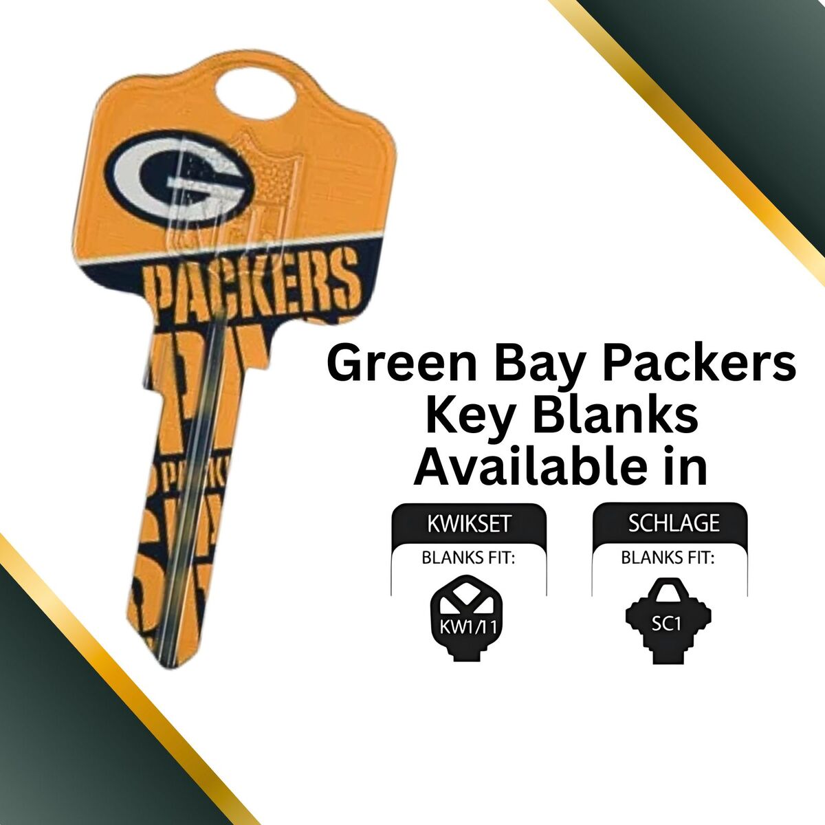 Green Bay Packers NFL Team Keys Available for Kwikset or Schlage Locks