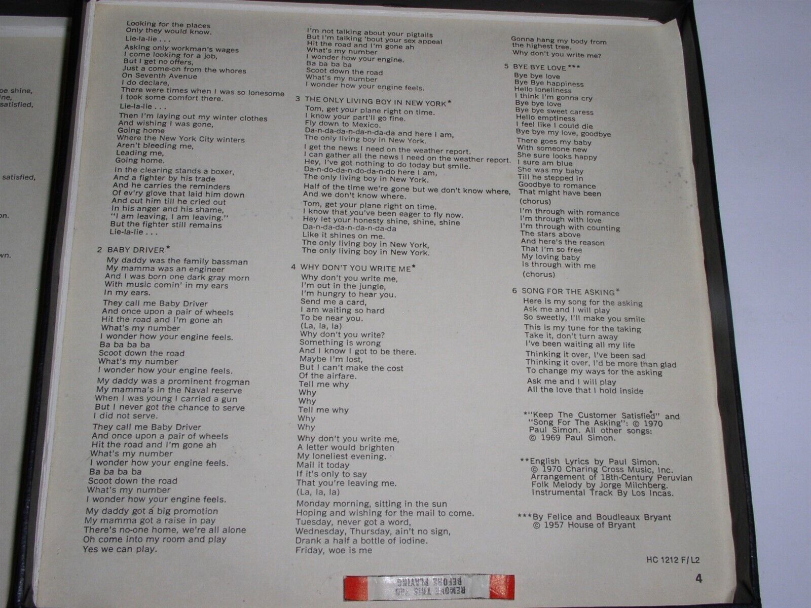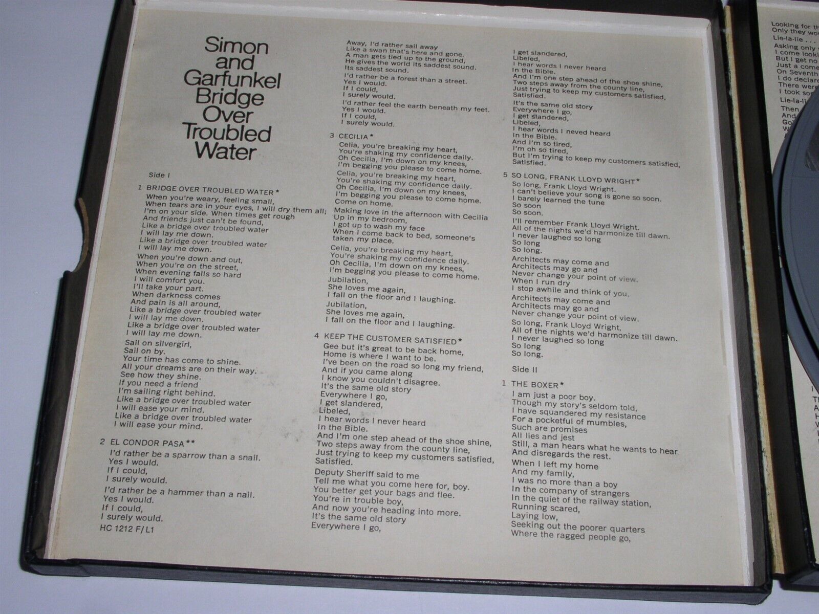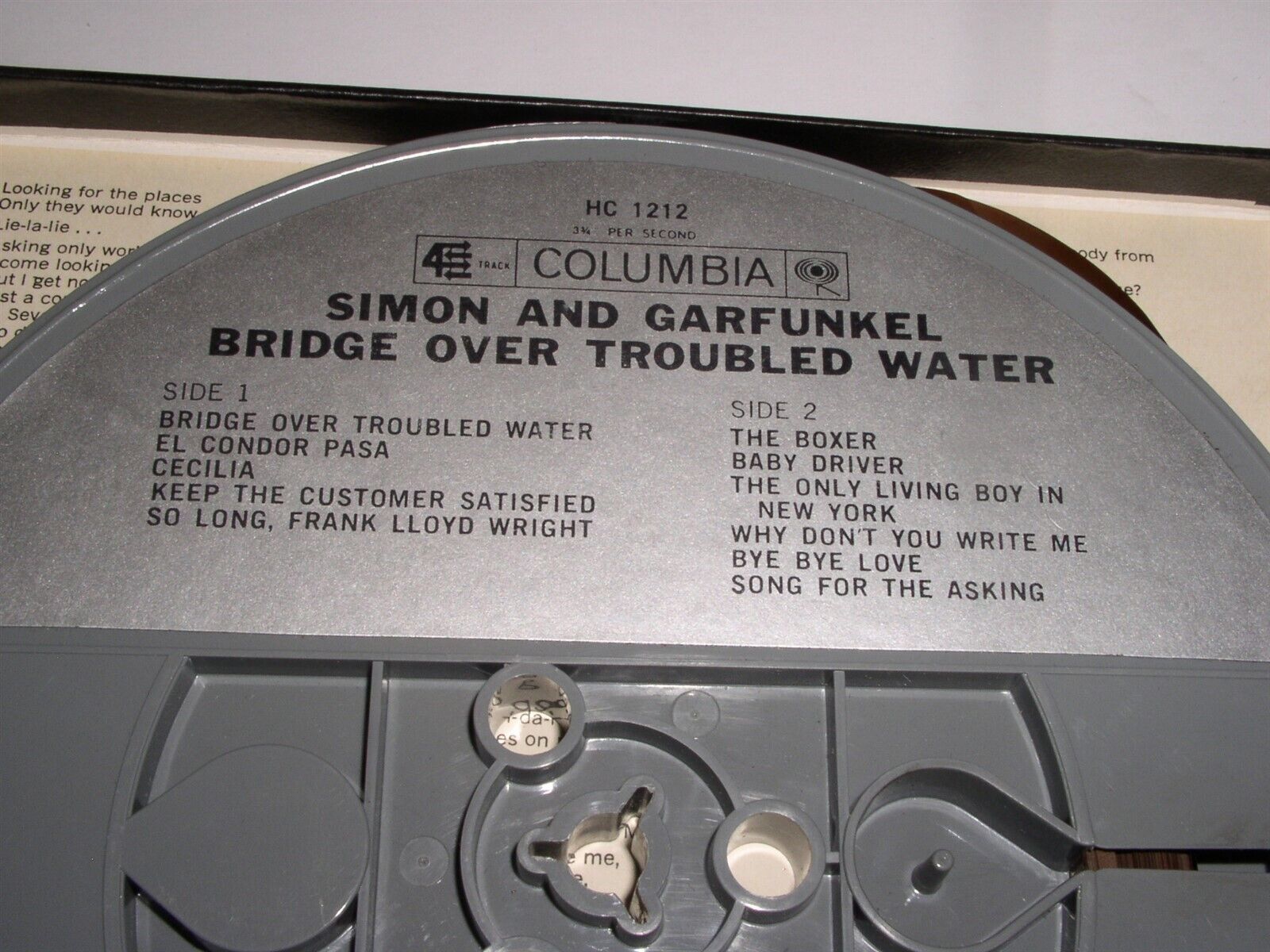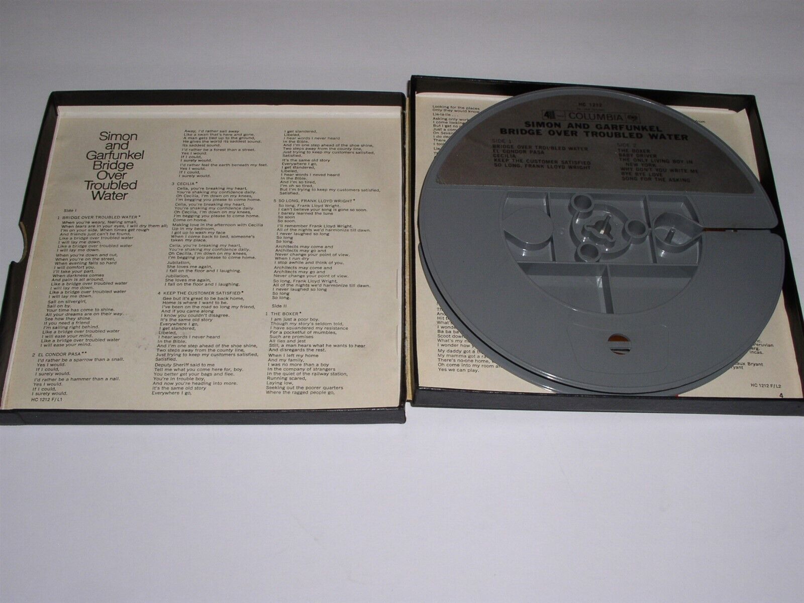This is an original, vintage pre-recorded reel to reel tape for the Simon Garfunkel album entitled, "Bridge Over Troubled Water". Recorded at 3 3/4 IPS. A terrific item for the fan or collector. Label: Columbia HC 1212 .