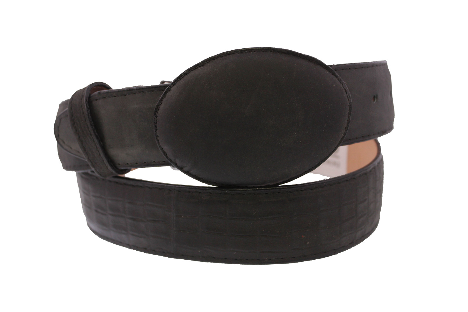 Western Cowboy Belt Rodeo Wear Crocodile Belly Print Leather Black Cinto Vaquero