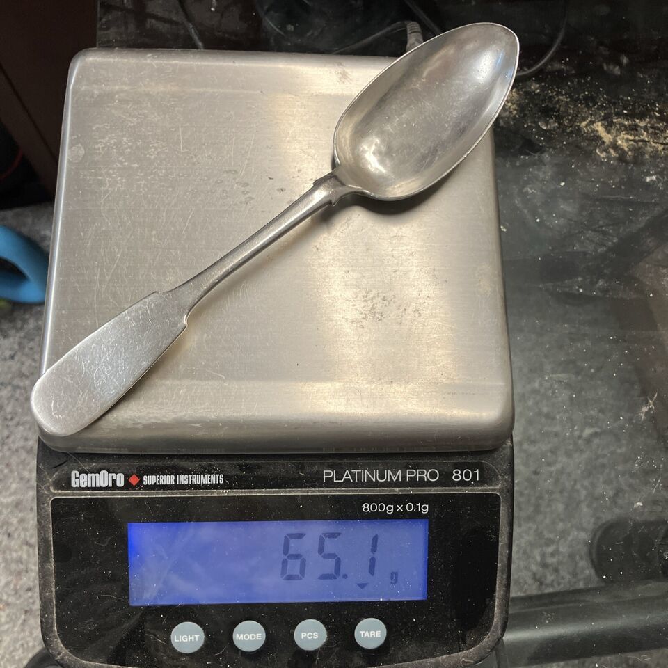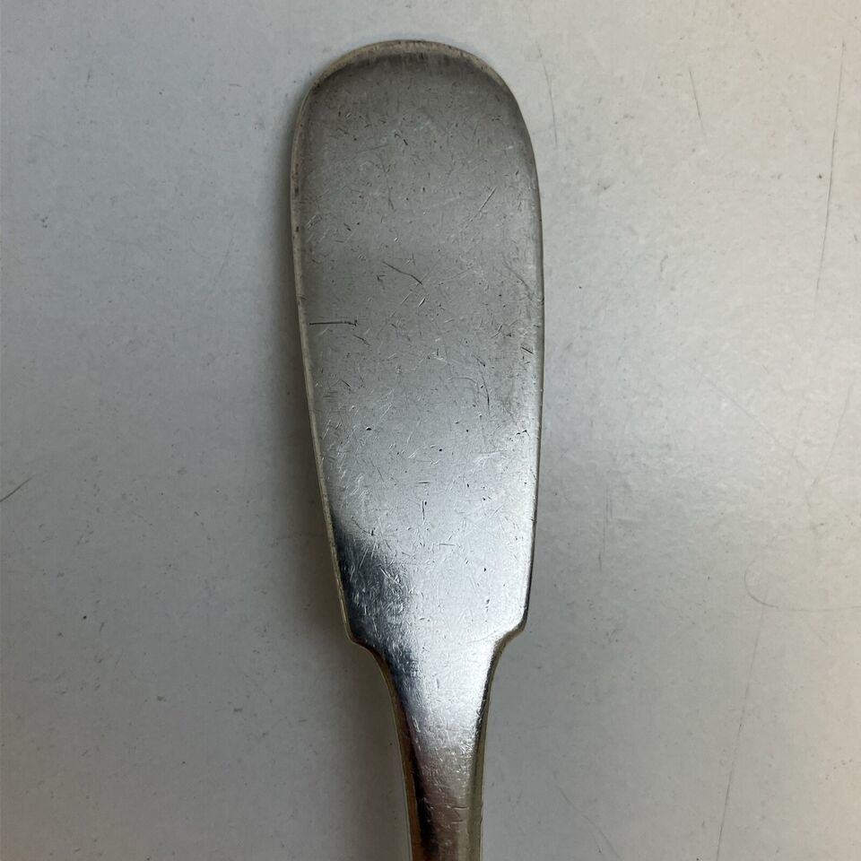 The spoon itself is long at 8.5 inches and weighs 65 grams (just over 2 Troy ounces). It has seen use and the spoon bowl has some dings and dents that again can be forgiven for being 160+/- years old.