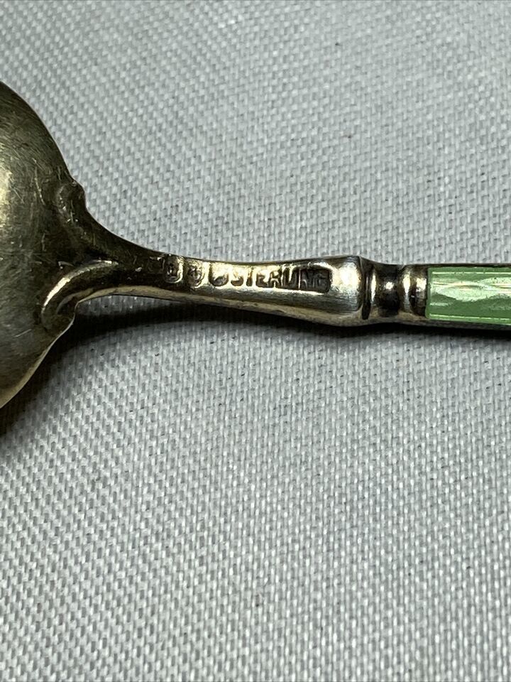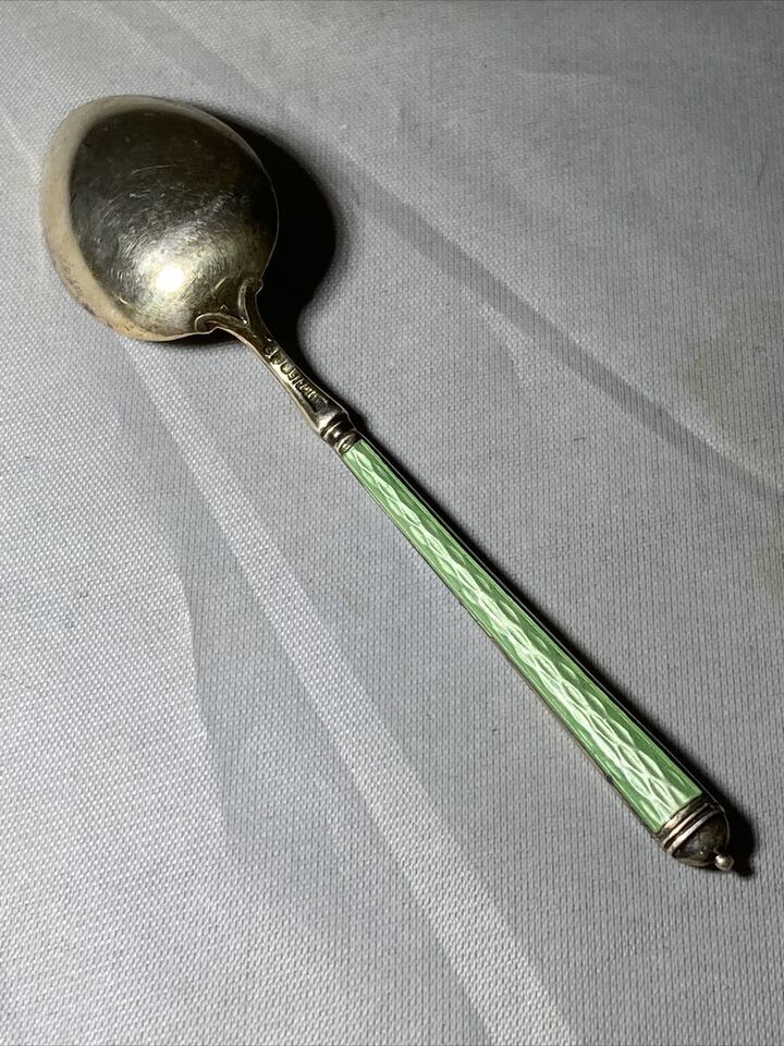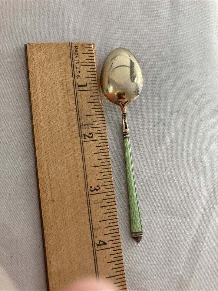 Green Guilloche Enamel Gold Wash Sterling 4” Demitasse Spoon