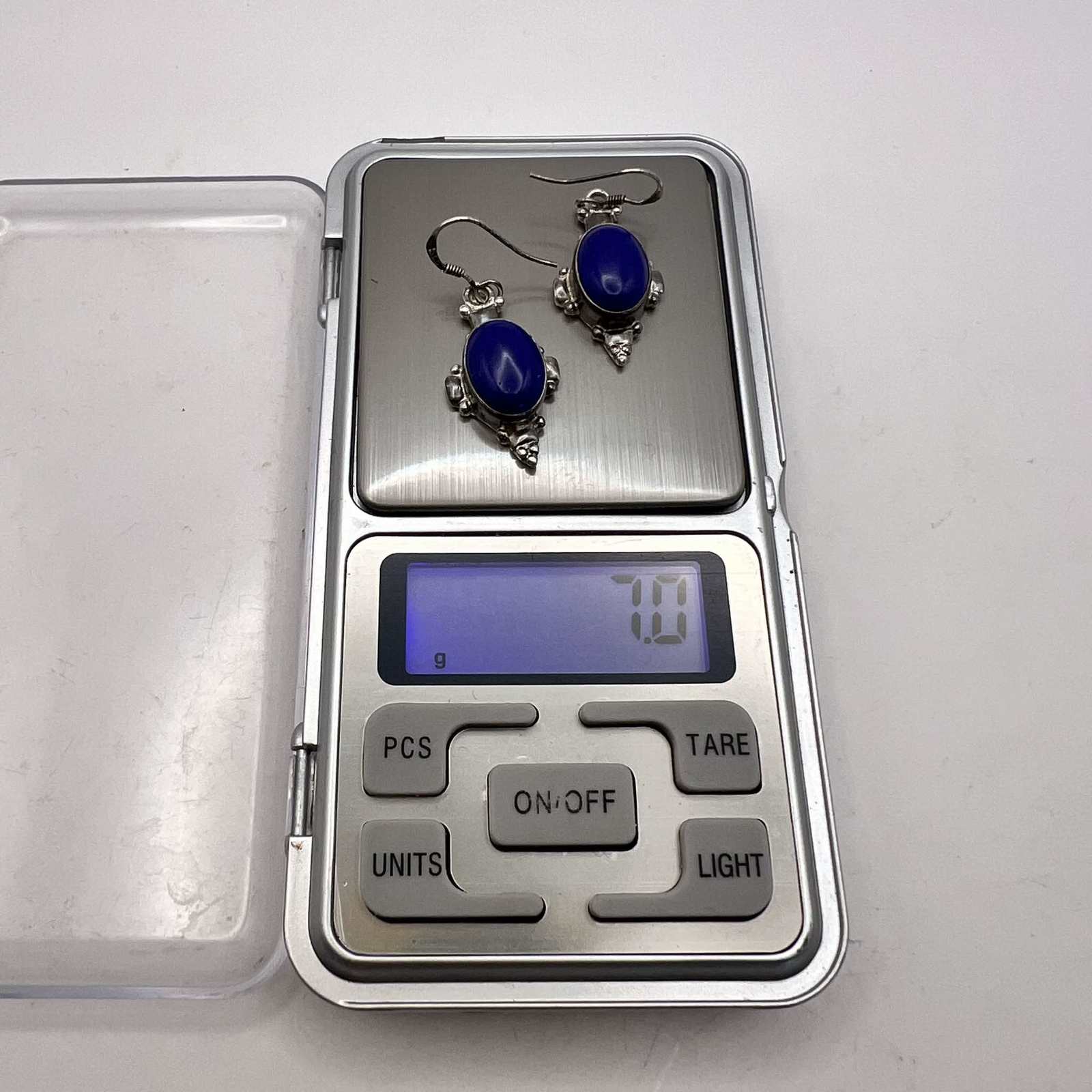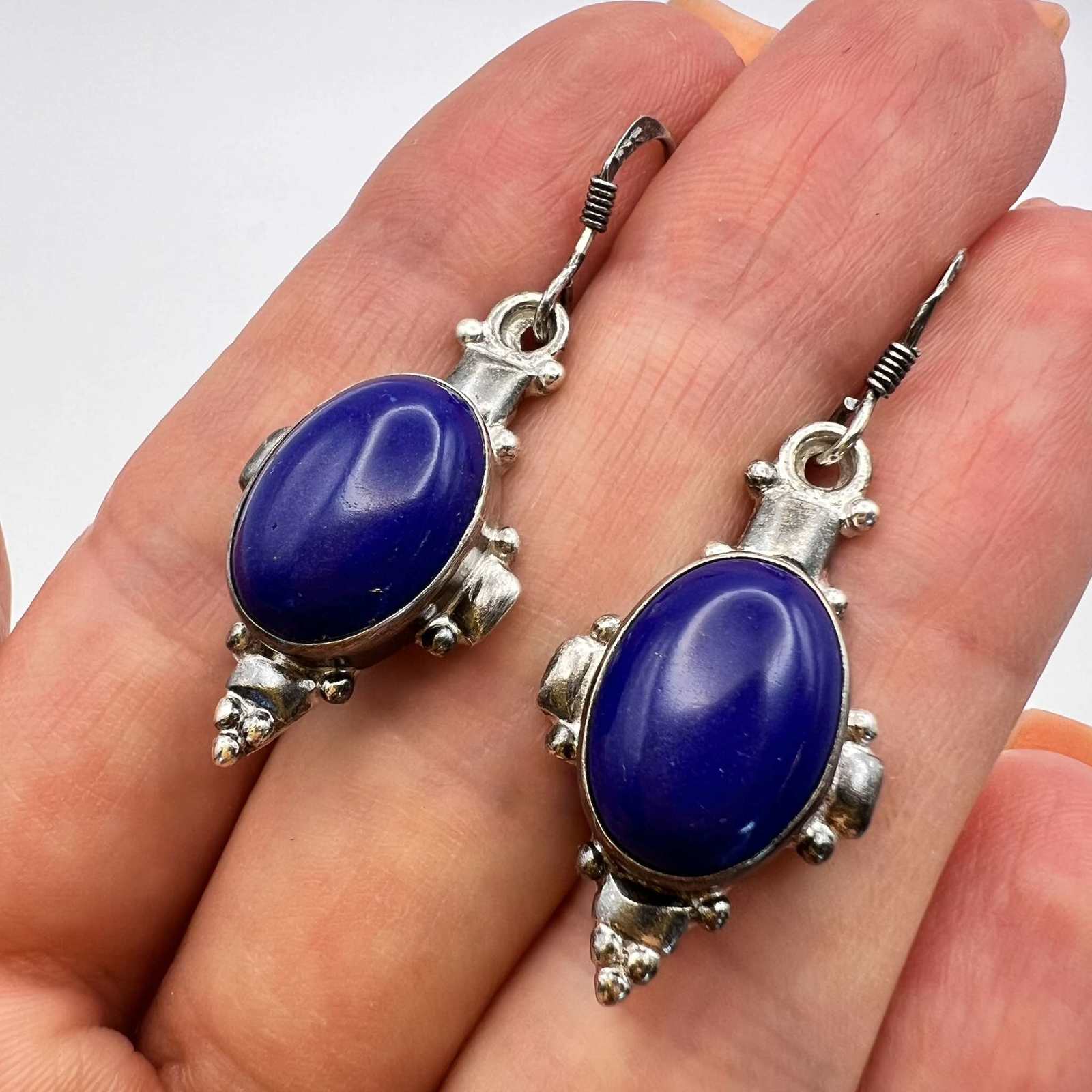 Vintage Sterling Silver 925 Womens Jewelry Earrings Lapis Lazuli Stone Signed 7g