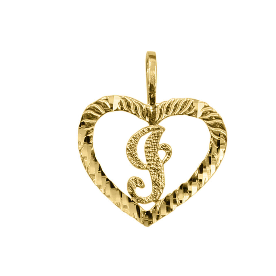 Genuine 14k Yellow Gold 0.59" Diamond-cut Initial Letter I Heart-shaped Pendant