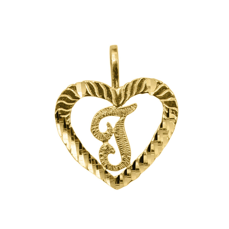 Genuine 14k Yellow Gold 0.59" Diamond-cut Initial Letter T Heart-shaped Pendant