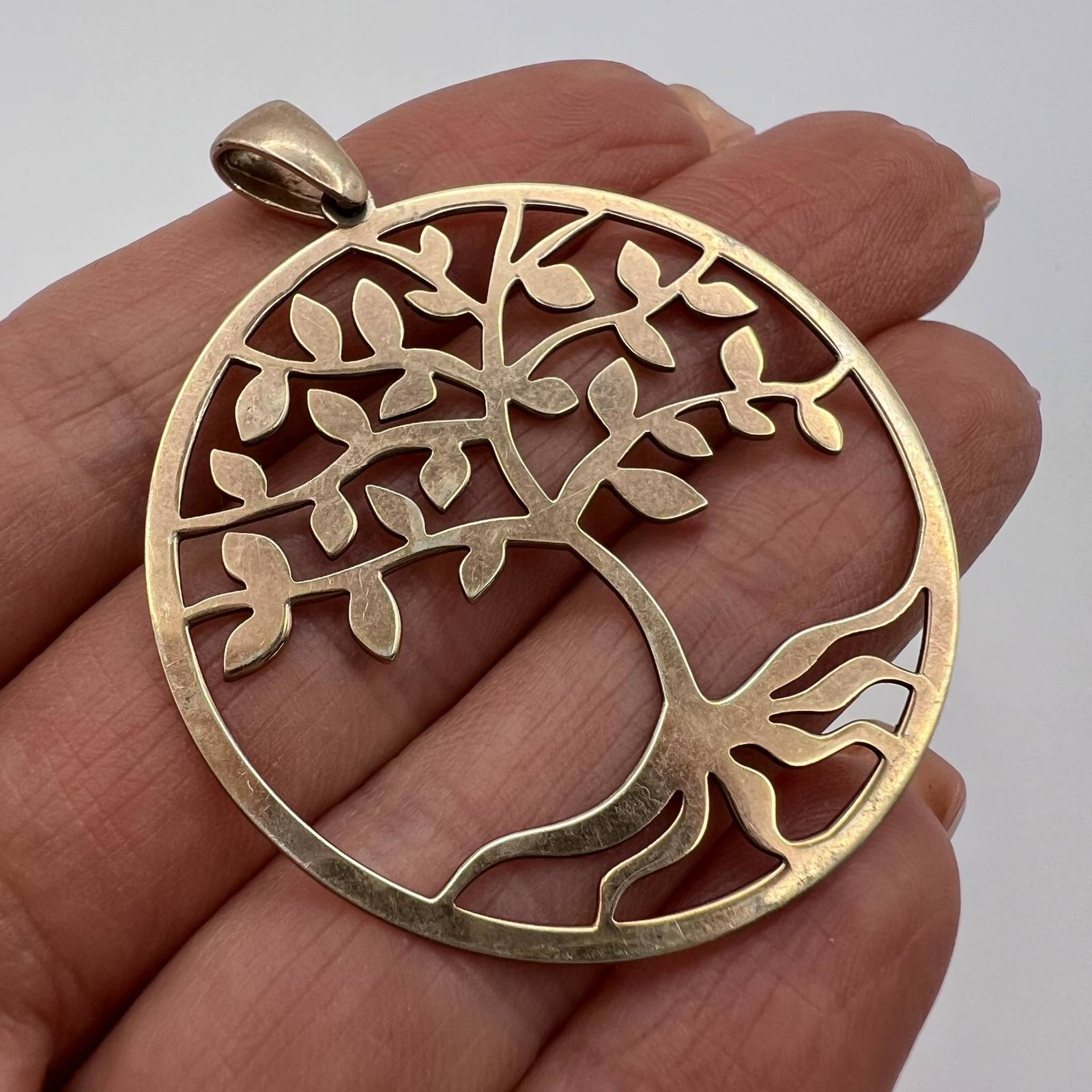 Large Vintage Women's Jewelry Pendant Tree of the Life Gilt Sterling Silver 925 Signed Marked Made in Ukraine