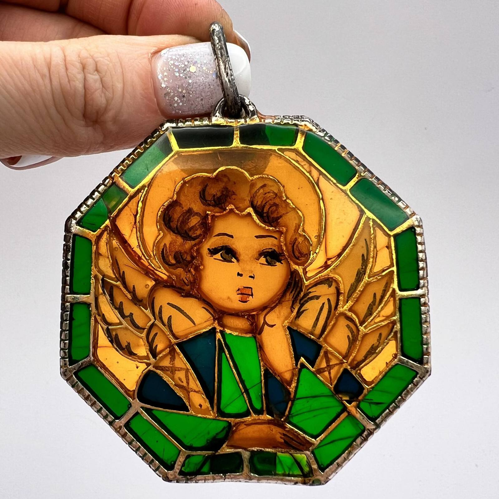 Massive Vintage Silver Pendant Angel Stained and 47 similar items